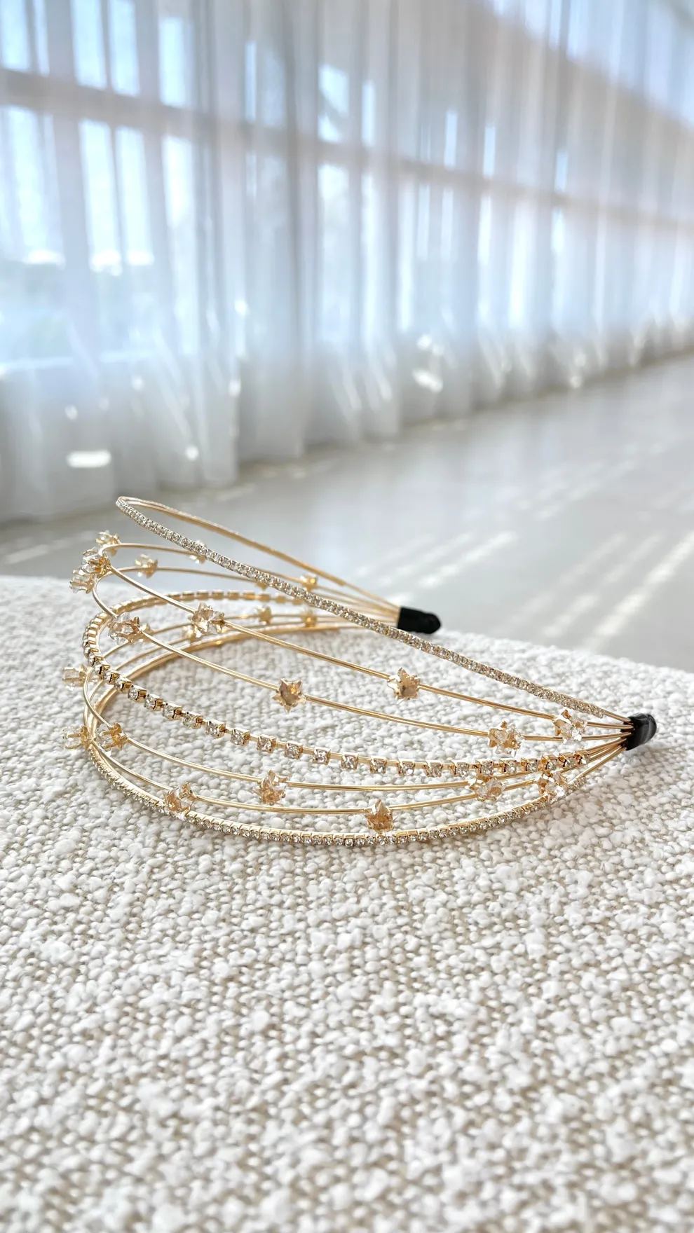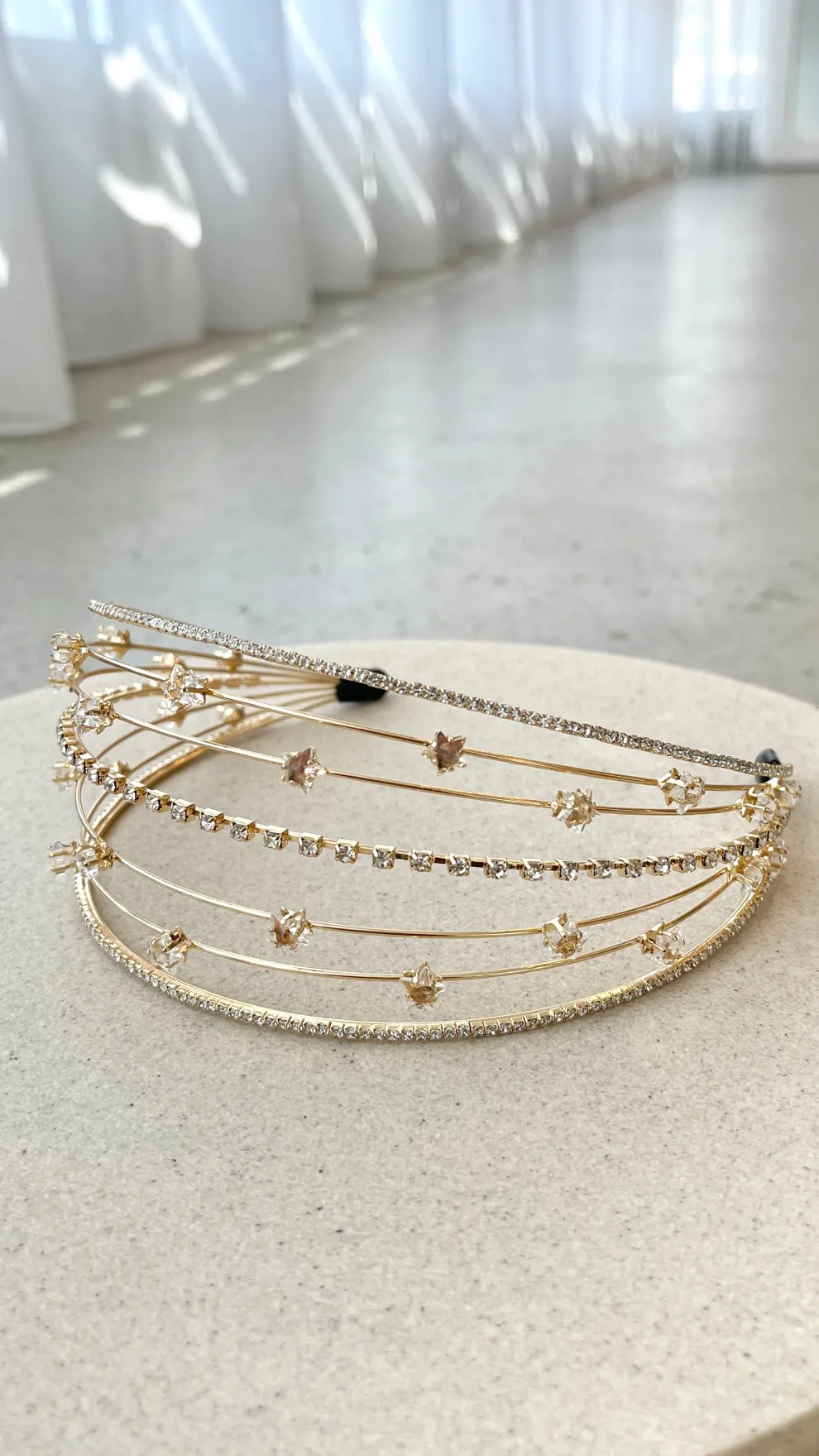 The Morgan & Taylor Astra Headband in Gold is an elegant, lightly detailed piece, wearable in multiple ways, for elegant and dramatic looks.
