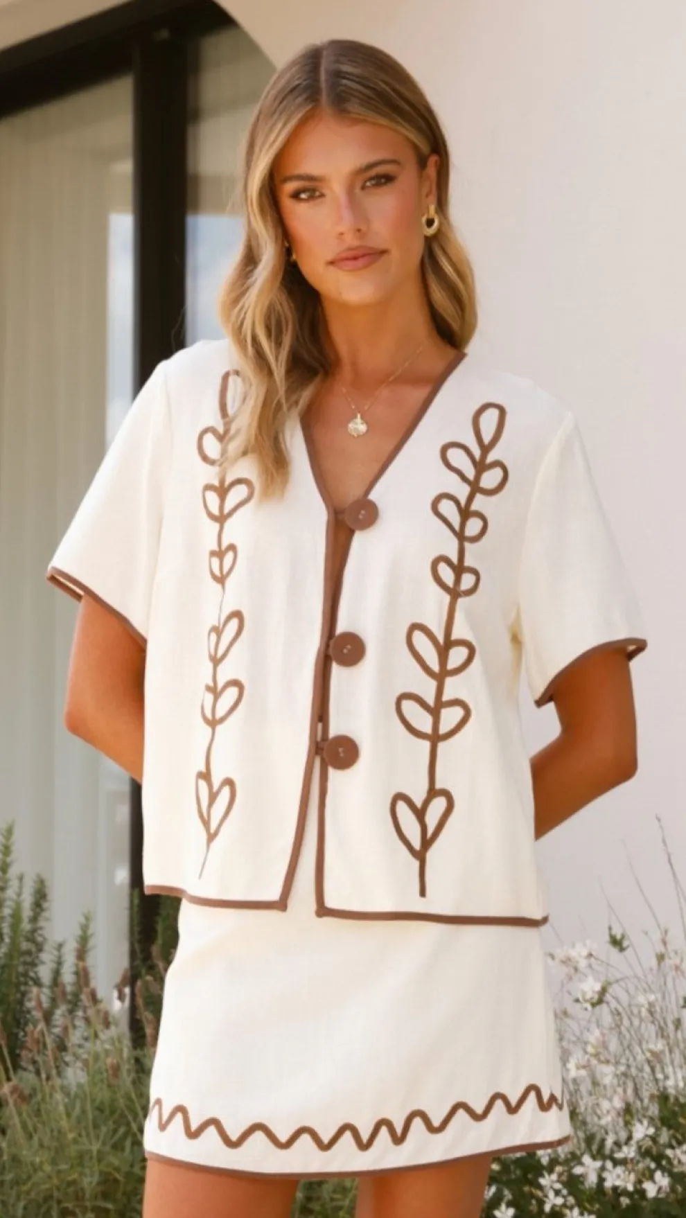 Get the look! Amylee Slide – Light Cashew & Easton Top – Cream
