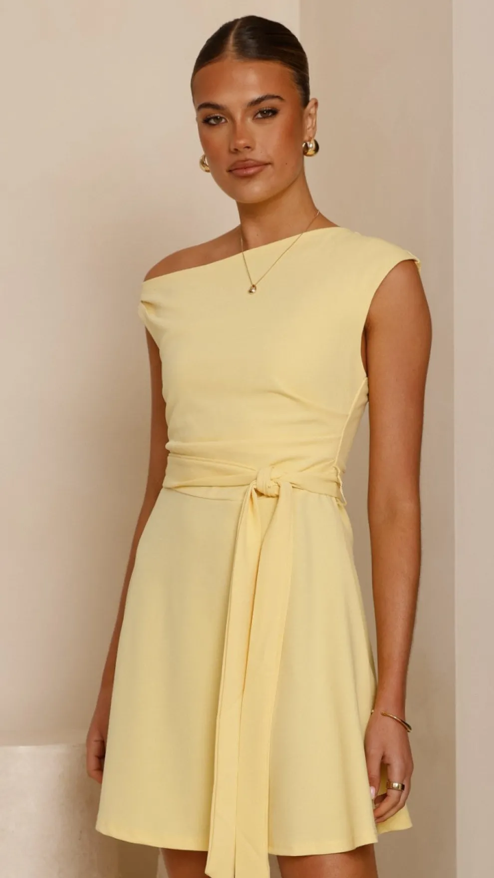 – Asymmetrical off shoulder design