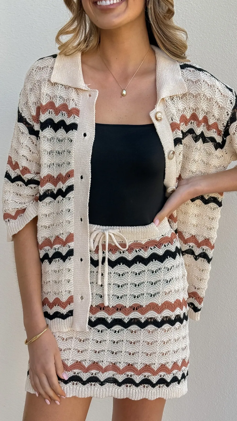 Get the look! Greta Button Up Shirt – Natural Stripe & Amaya Slide – Clay