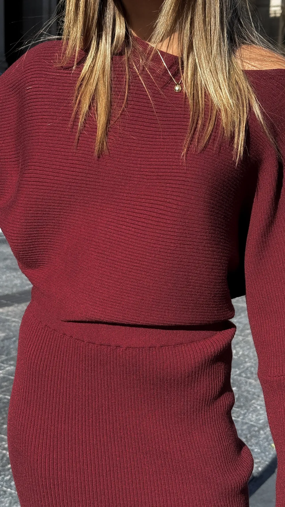 Get the look! Iluka Knit Skirt – Burgundy & Corbin Boot – Black