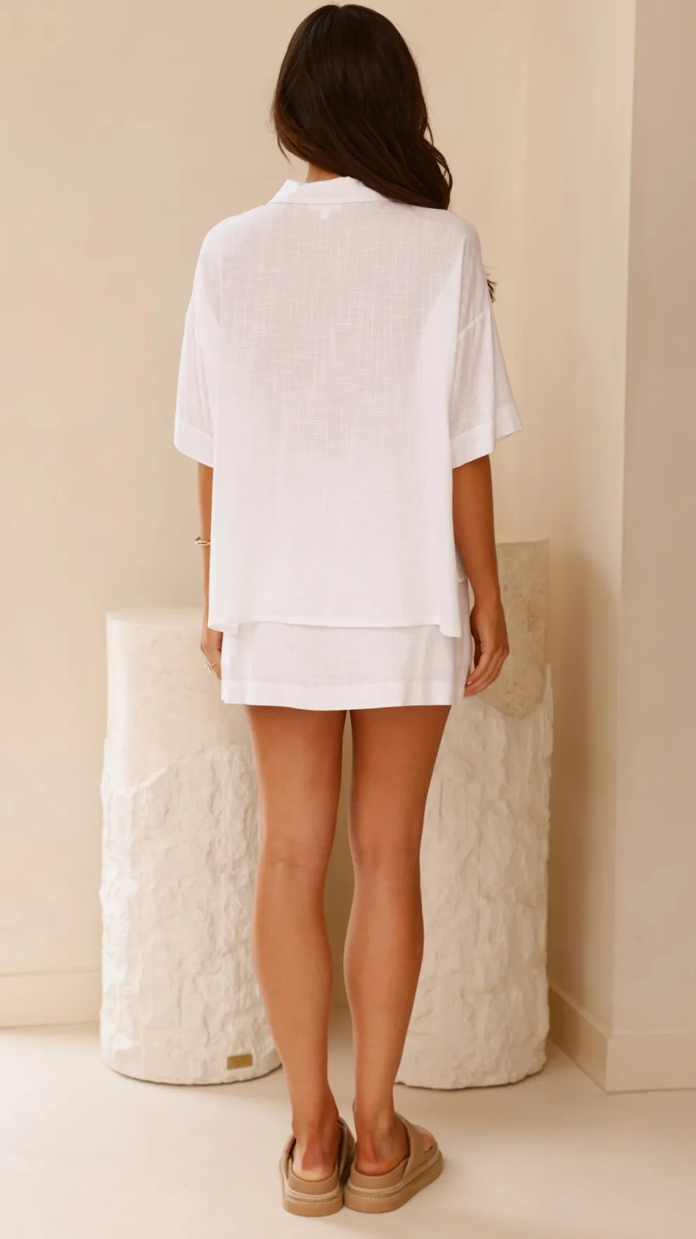 Get the look! Louise Top – White & Amaya Slide – Clay