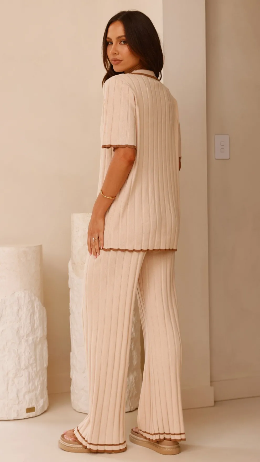 Get the look! Shaylie Button Up Shirt – Beige & Amylee Slide – Bone