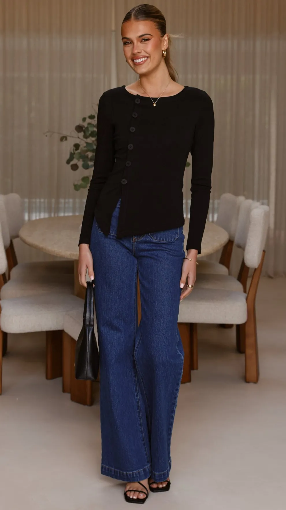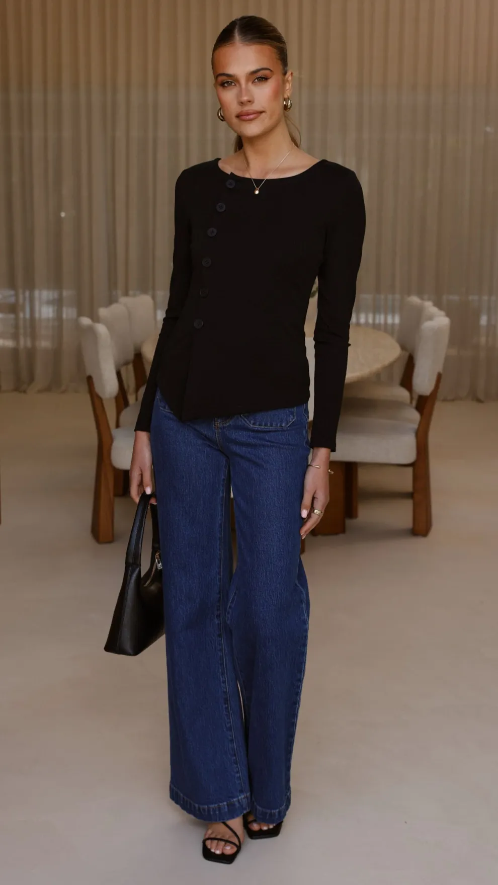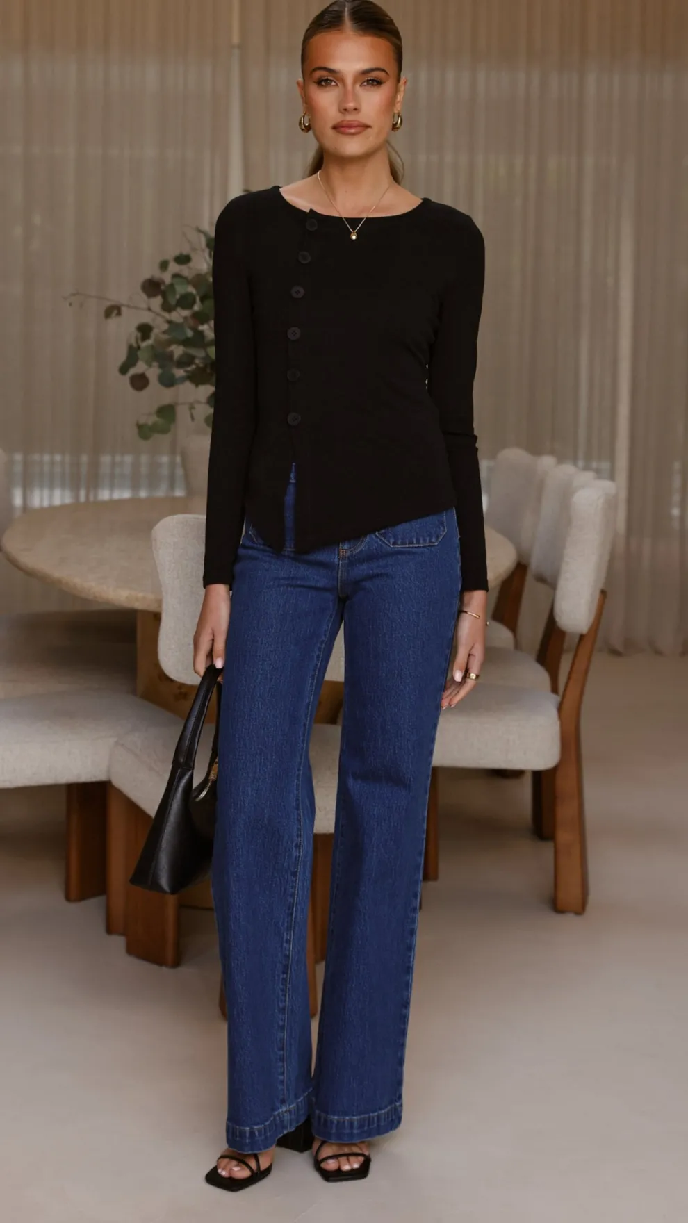 Get the look! Yazmin Heel – Black & Rollas Sailor Jean Long – Ashley Blue