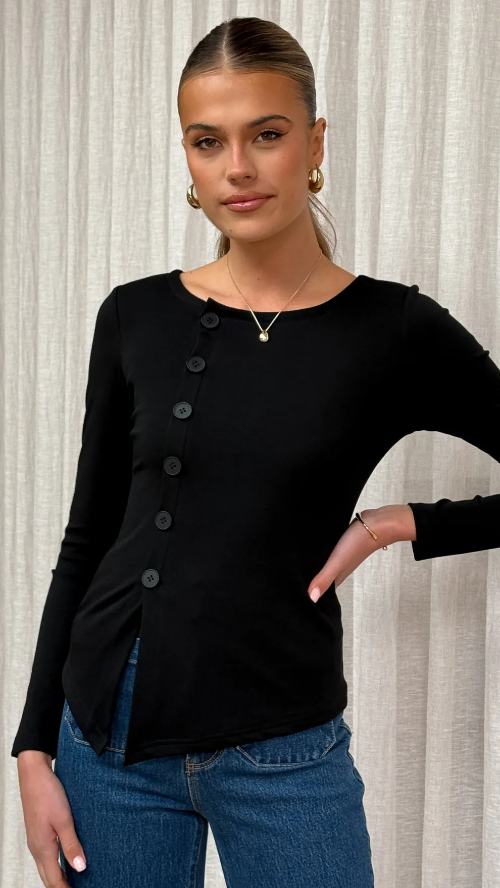 – Asymmetrical buttons on front