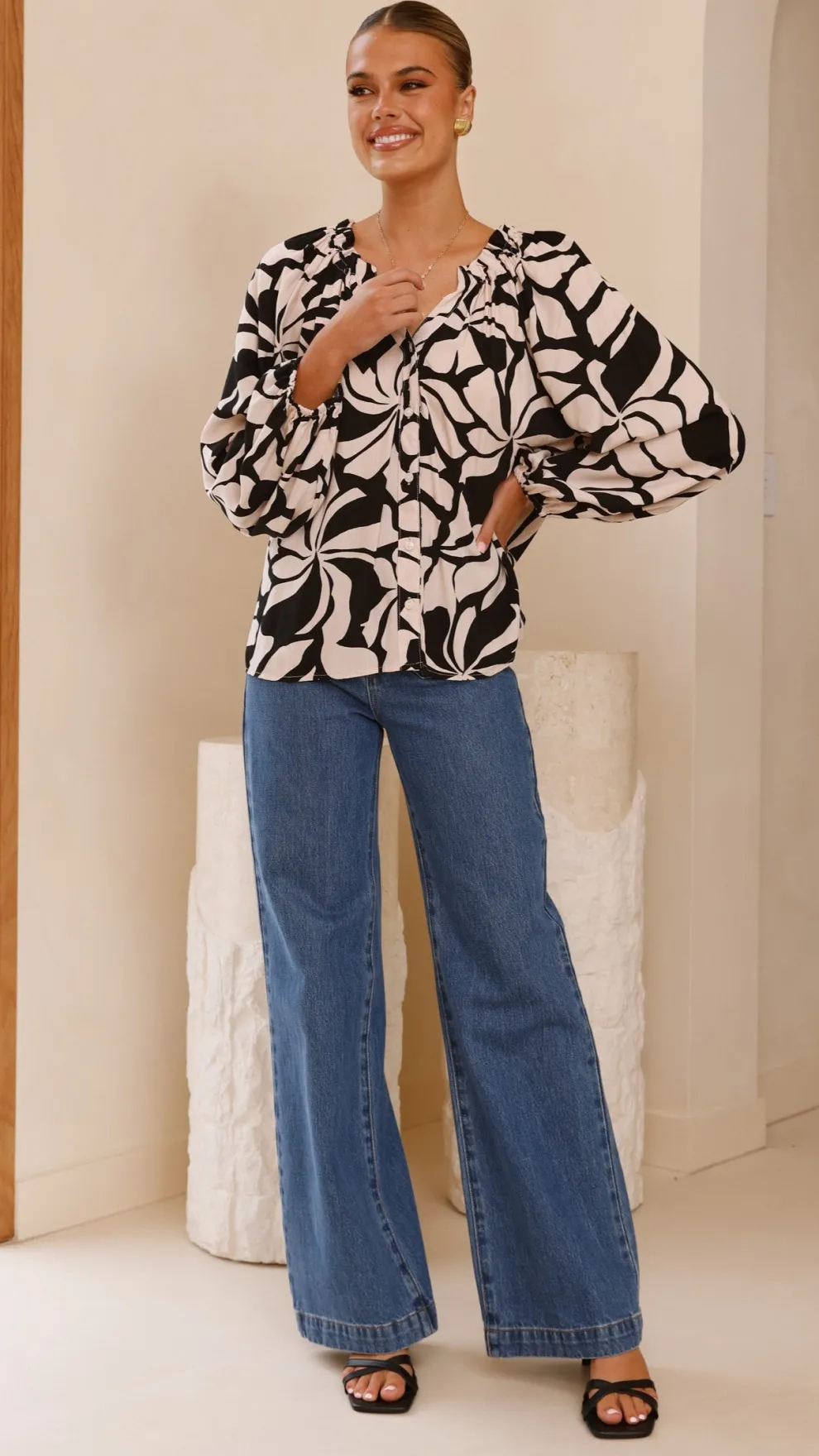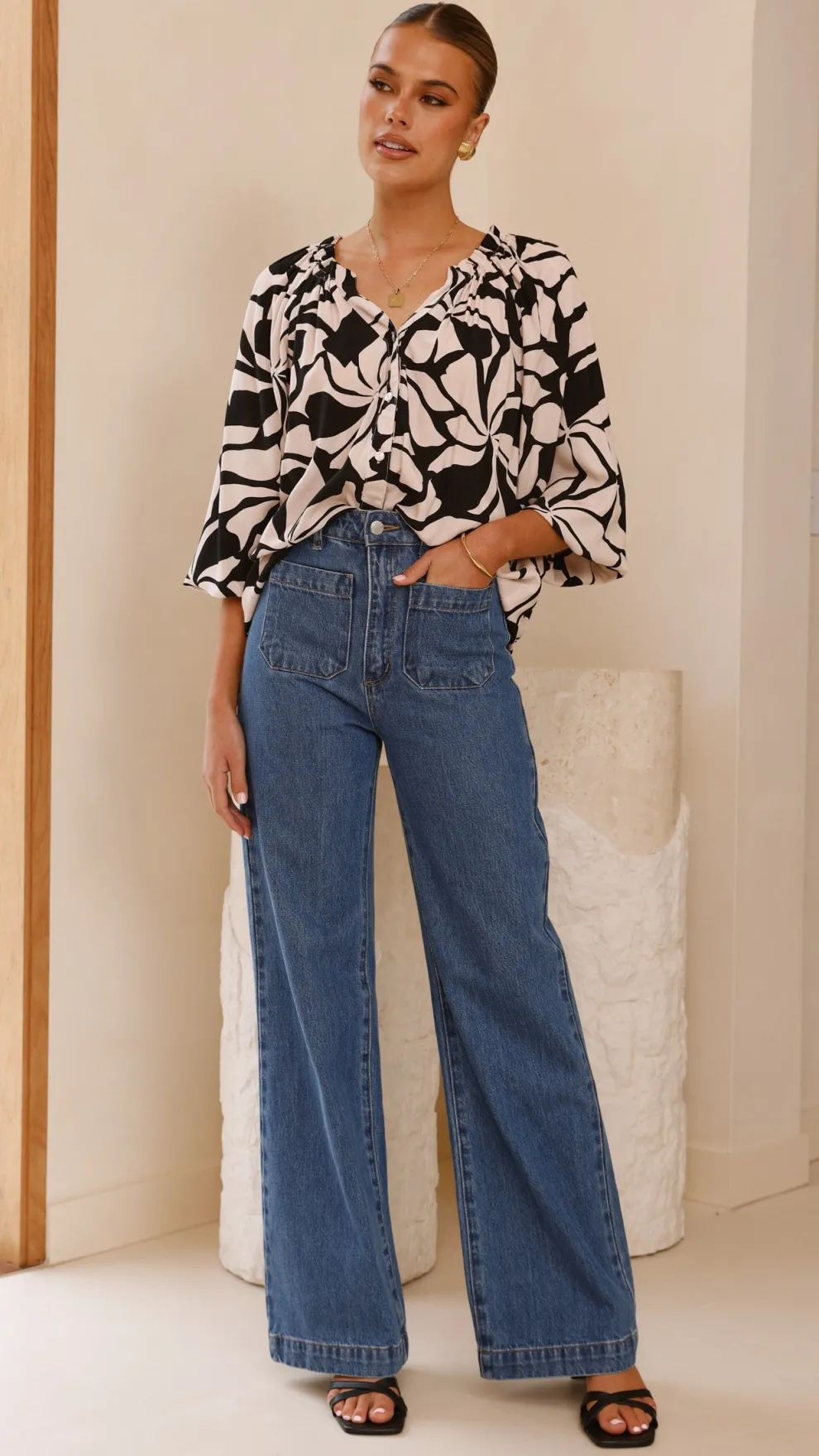 Get the look! Rollas Sailor Jean Long – Ashley Blue & Yahara Heel – Black