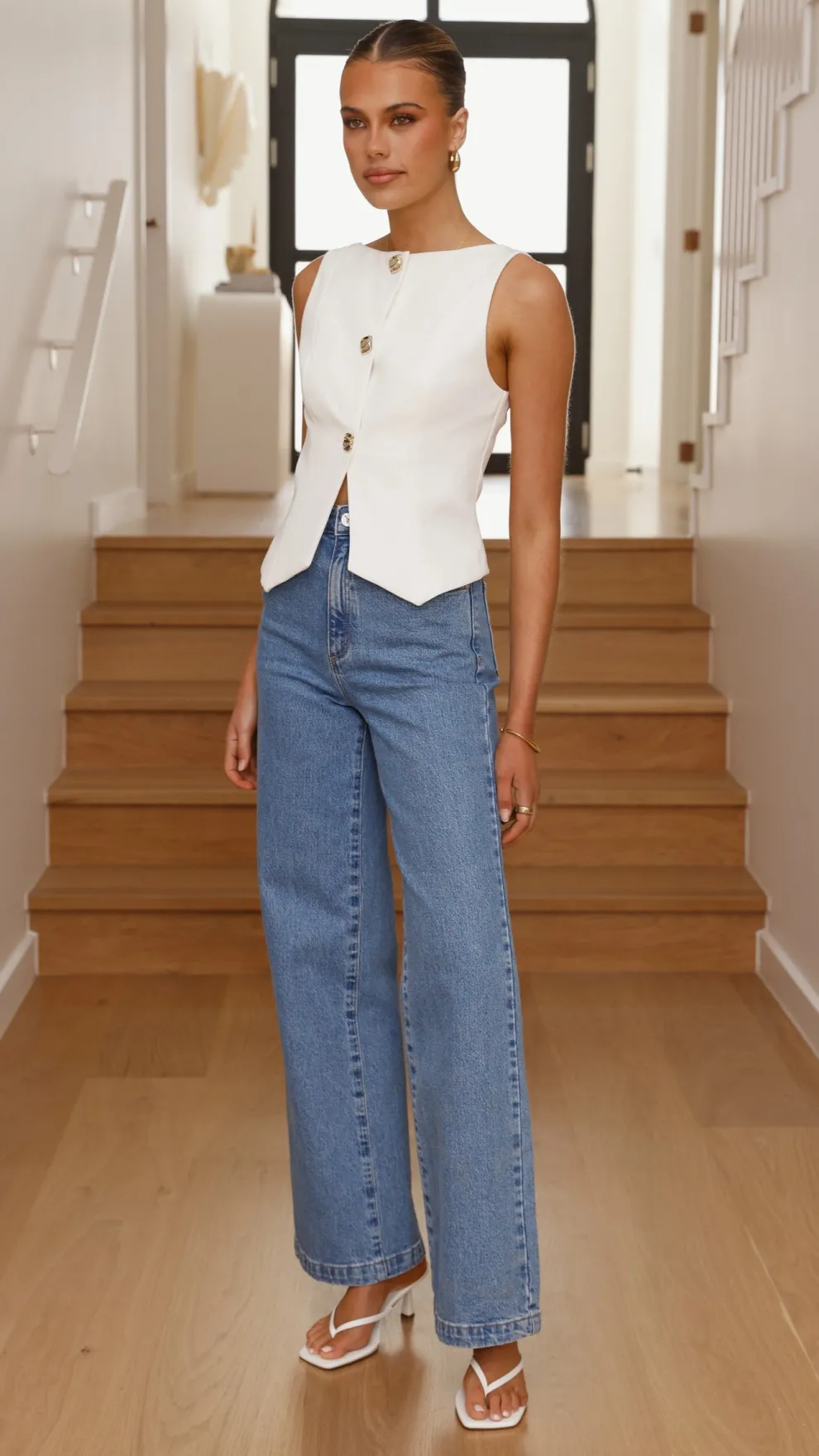 Get the look! Abrand 94 High Slim Jeans – Ruth & Yazmin Heel 2.0 – White