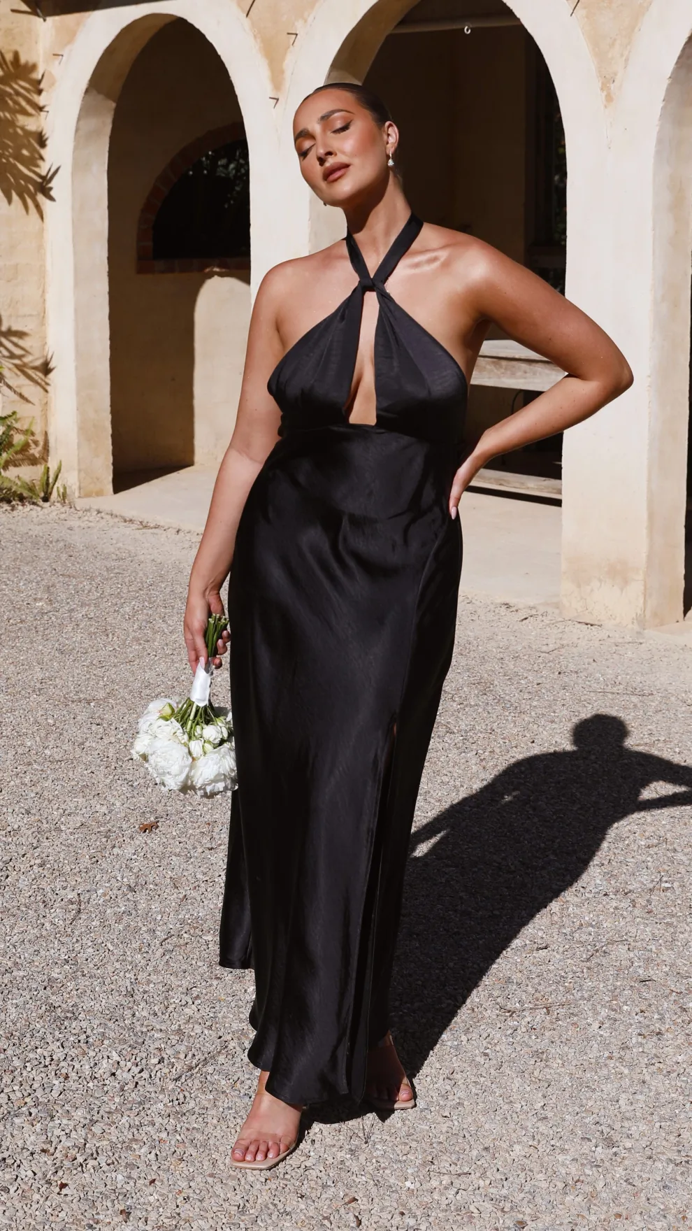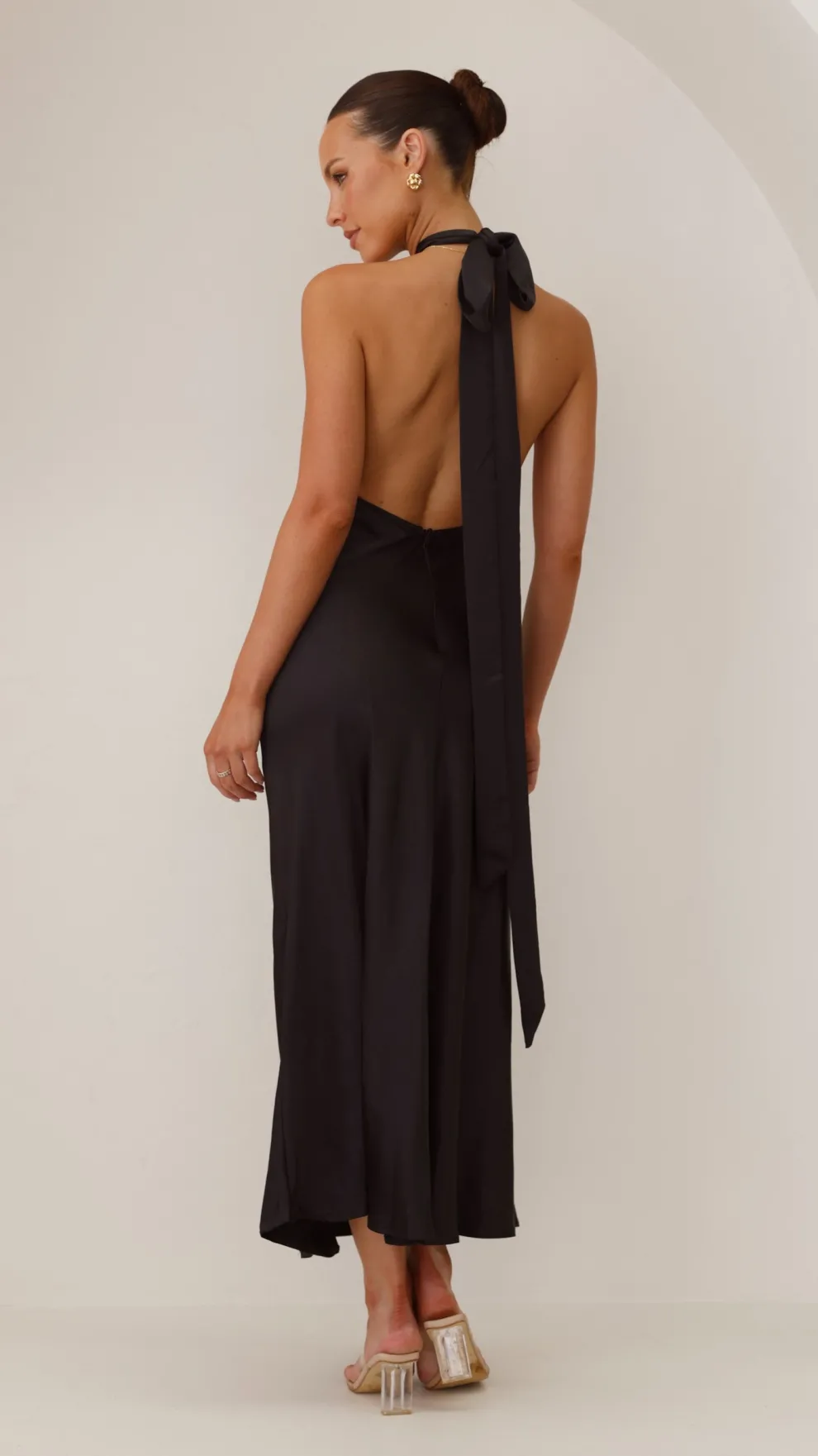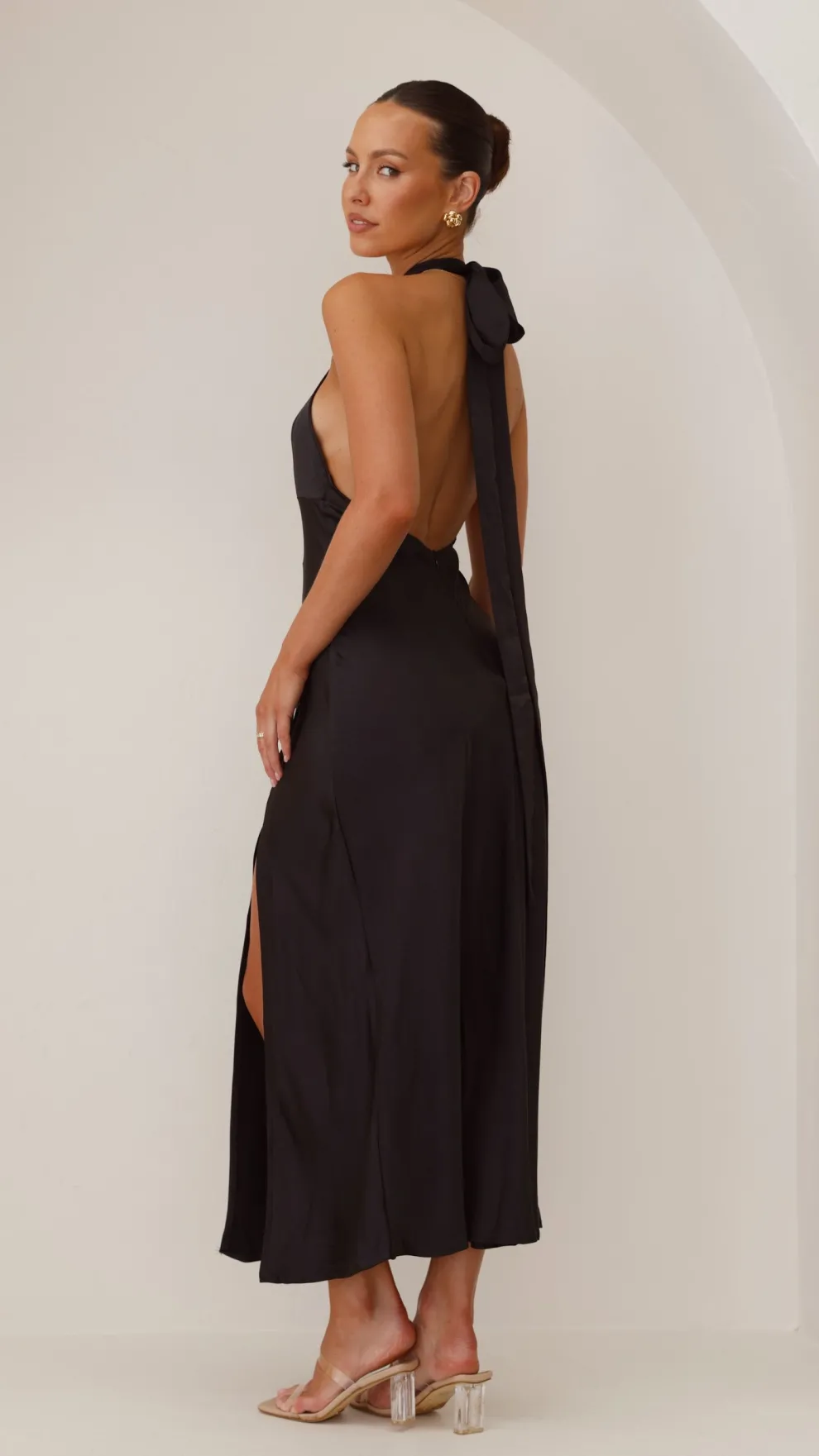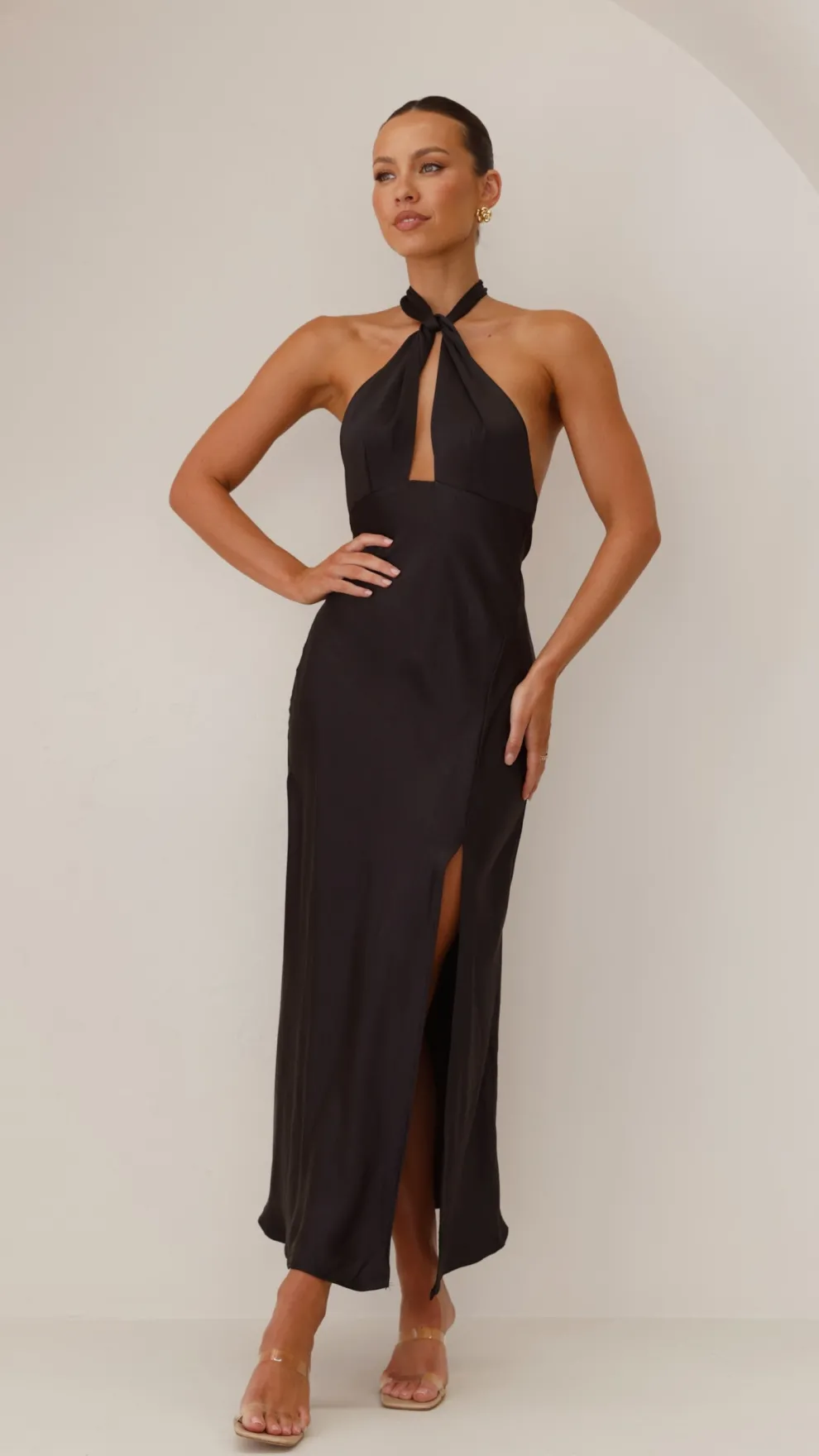 The Amalia Maxi Dress will be a stunning new addition to your wardrobe featuring a halter neck cut out detailing,adjustable neck tie, side slit and an enclosedzipper at the back.