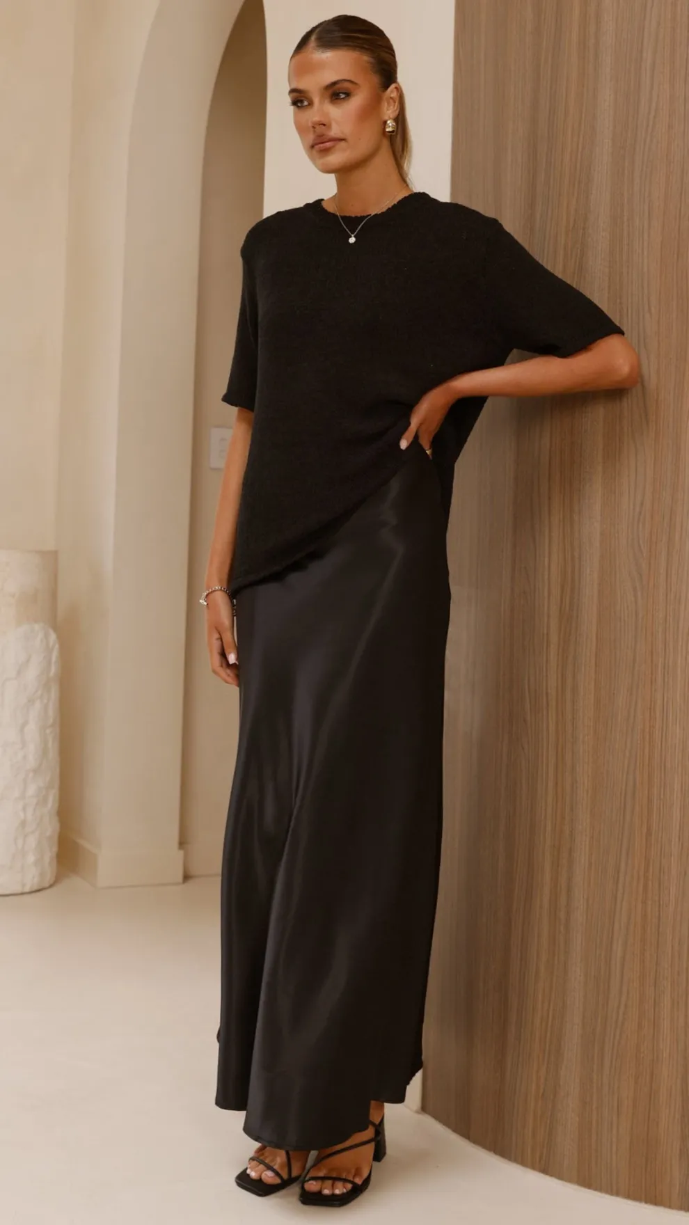Get the look! Darina Bias Cut Maxi Skirt – Black & Yazmin Heel – Black