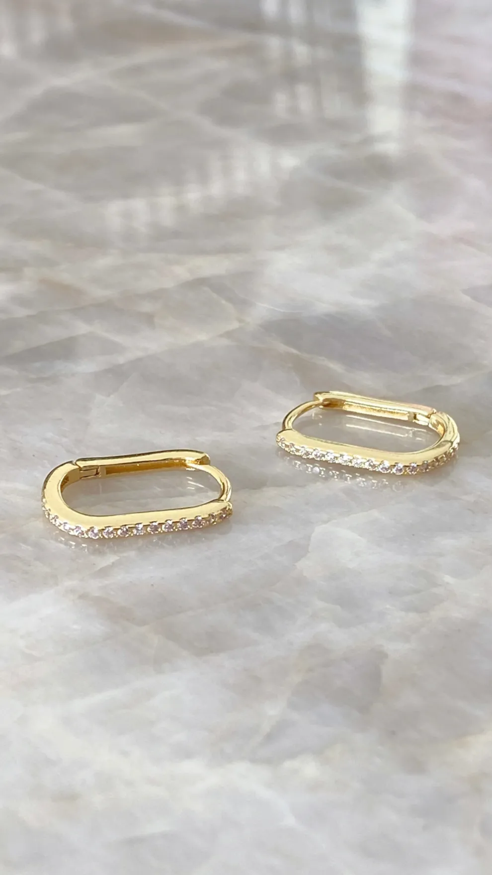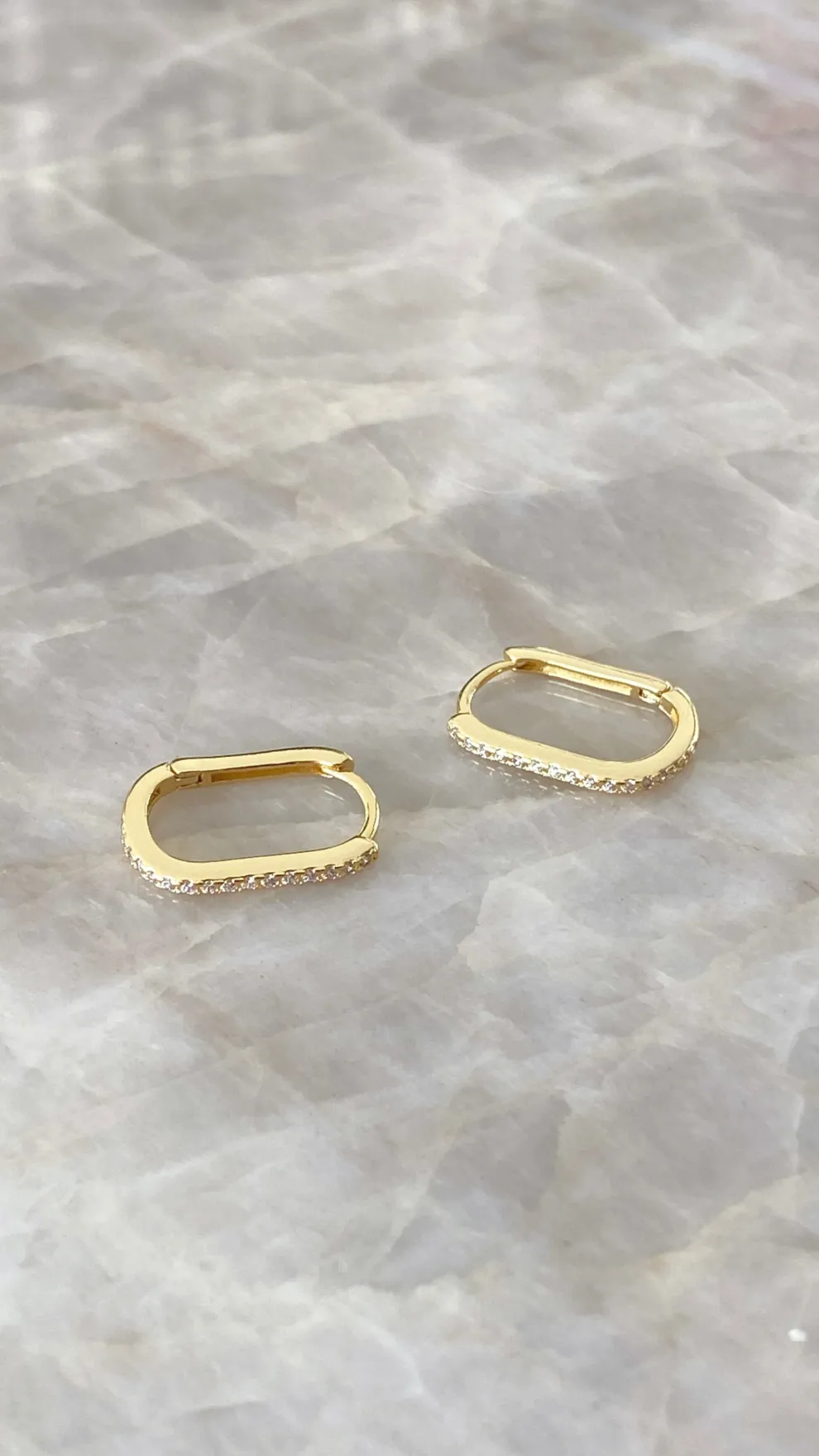 Dress up your outfit with the Ashlyn Sleepers, featuring gold oval hoops with gemstone details.