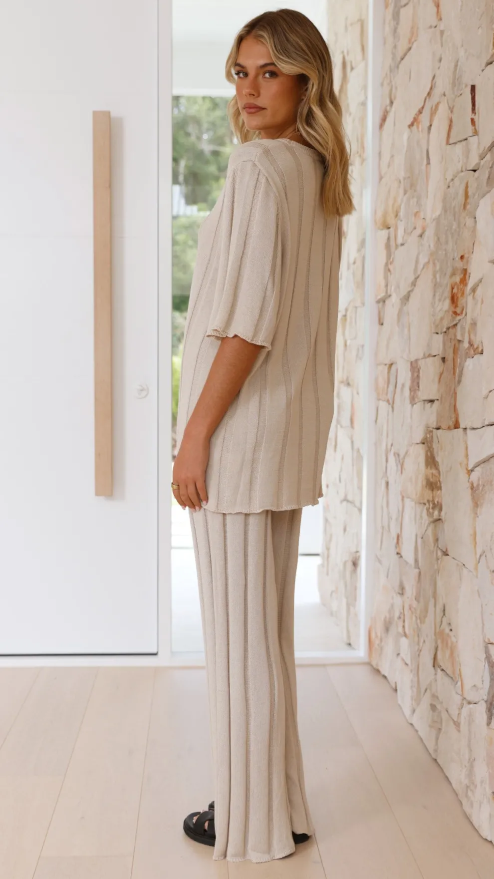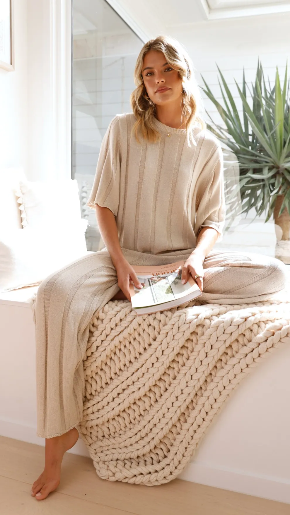 Get the look! Bayu Knit Top – Cream & Zanna Slide – Black