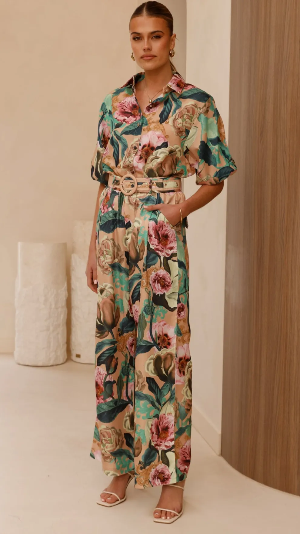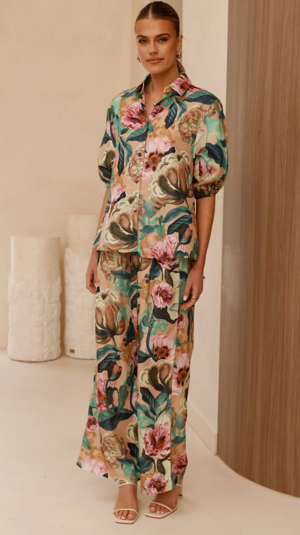 Get the look! Sammy Button Down Shirt – Mocha Rose & Hopper Heel – Bone
