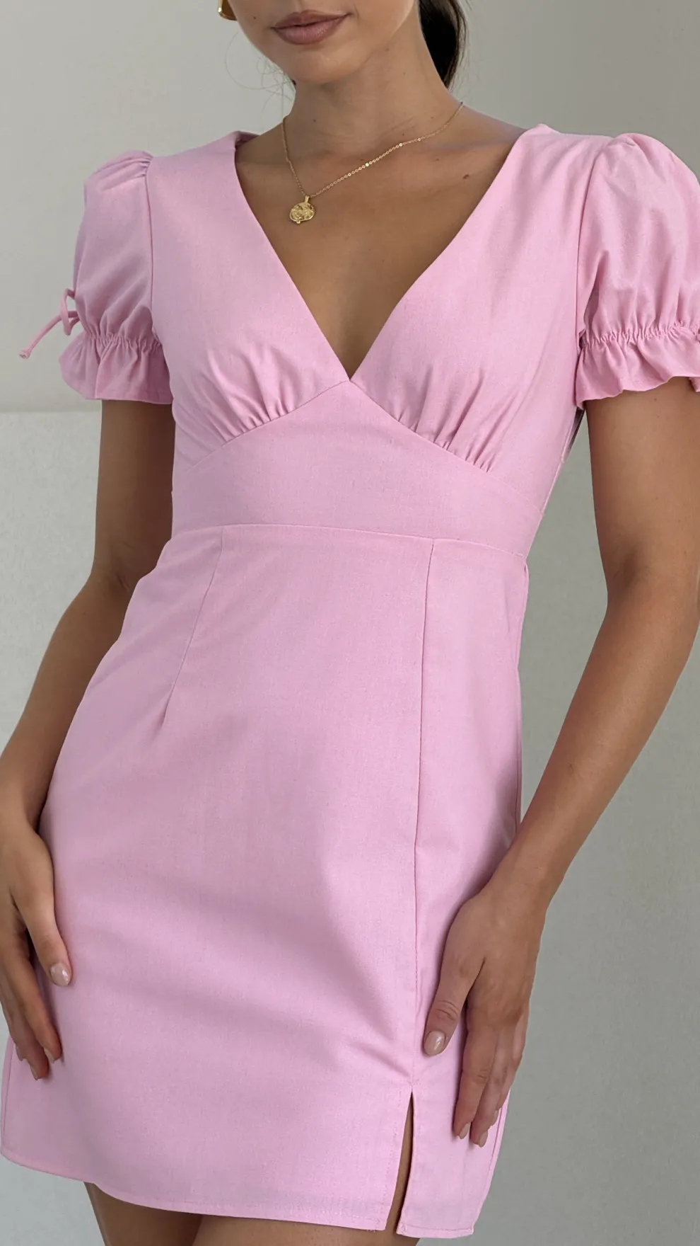 – Deep V neck