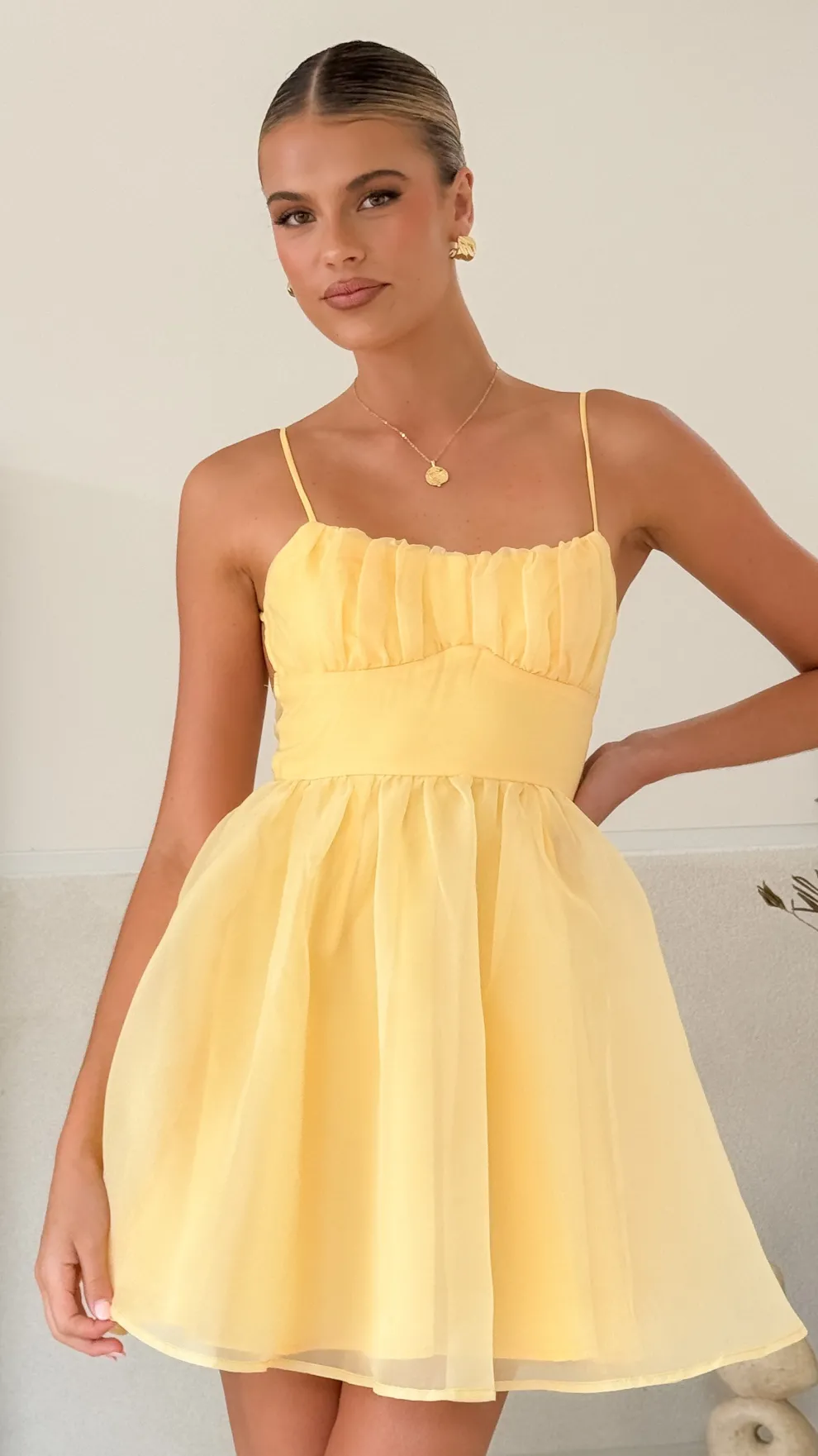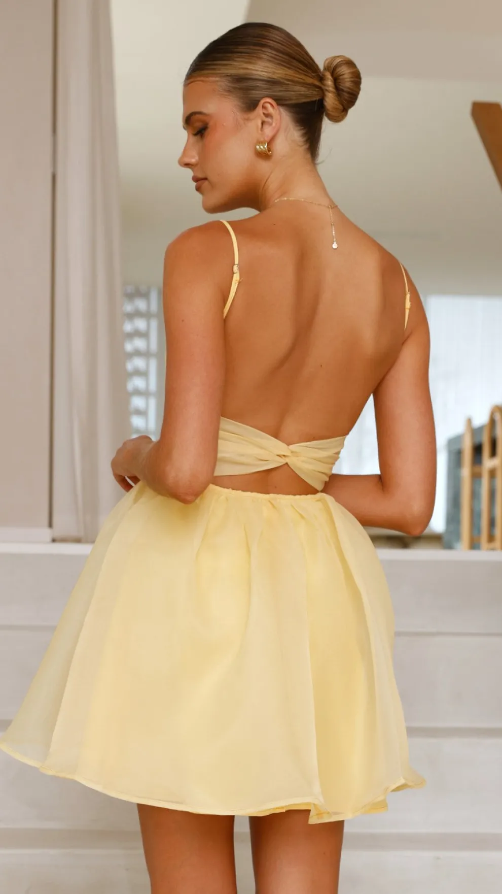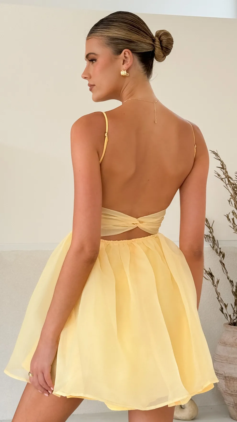 – Open back detailing with twisted strap
