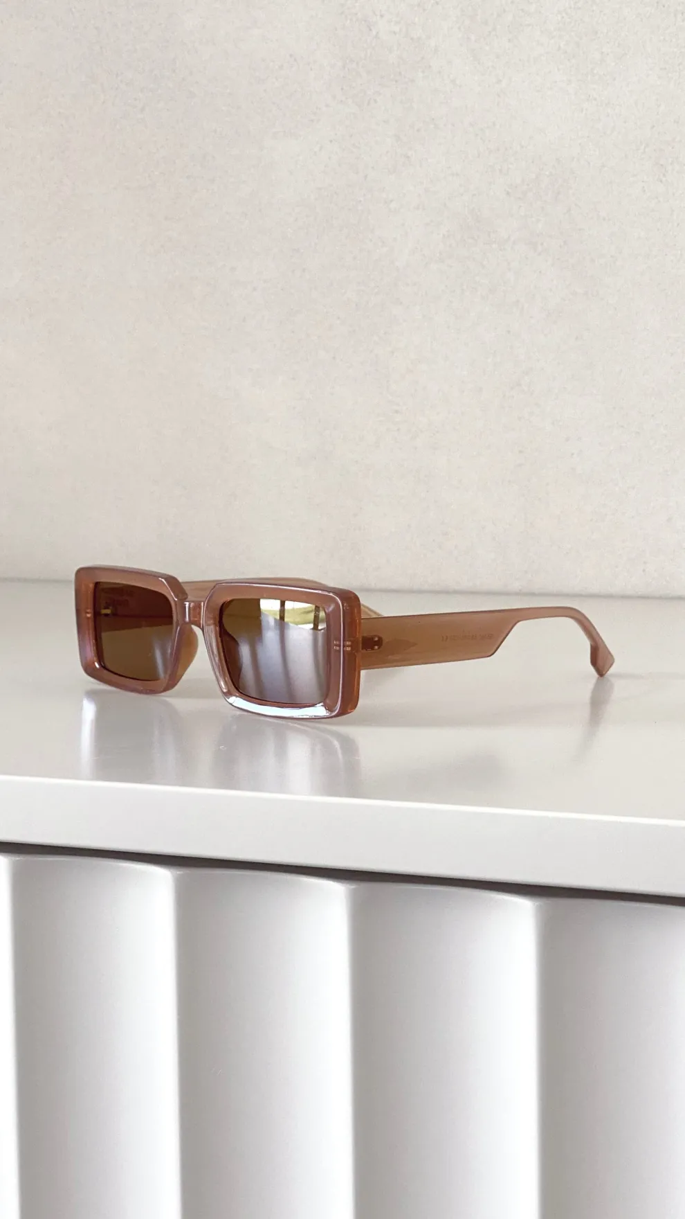 – Material: Acrylic frame with tinted coloured lens