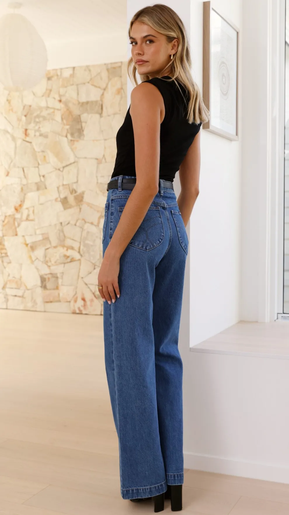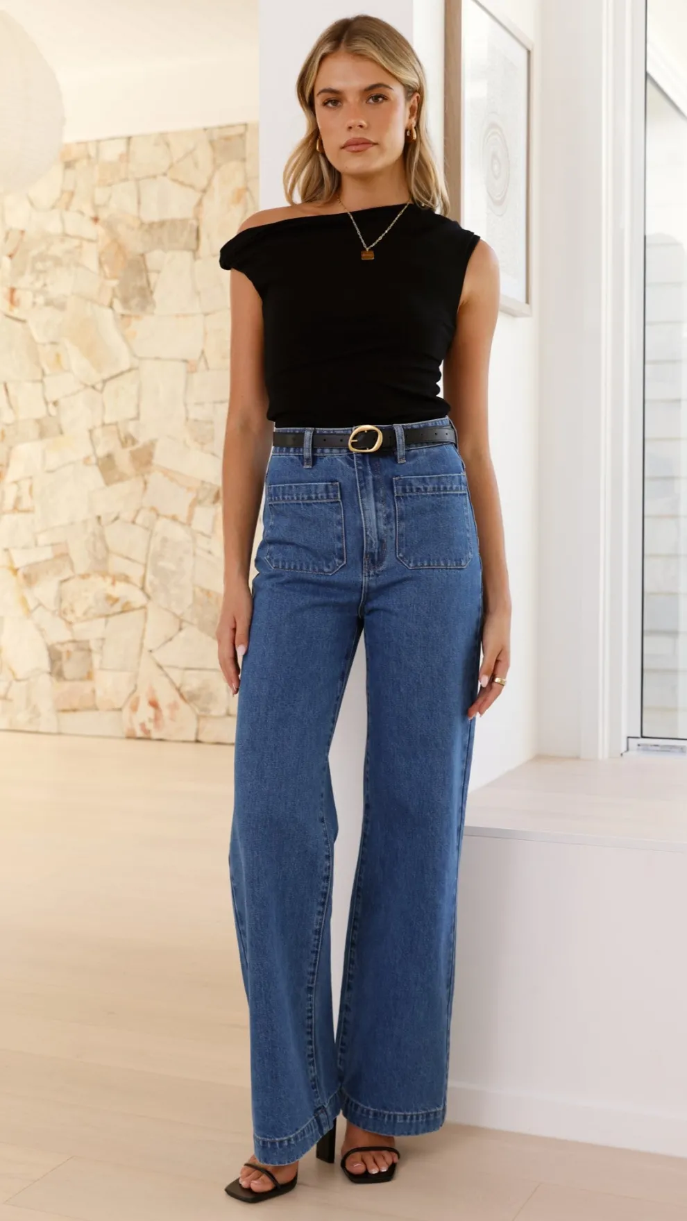 Get the look! Morgana Belt – Black & Rollas Sailor Jean Long – Ashley Blue & Chantel Heel – Black