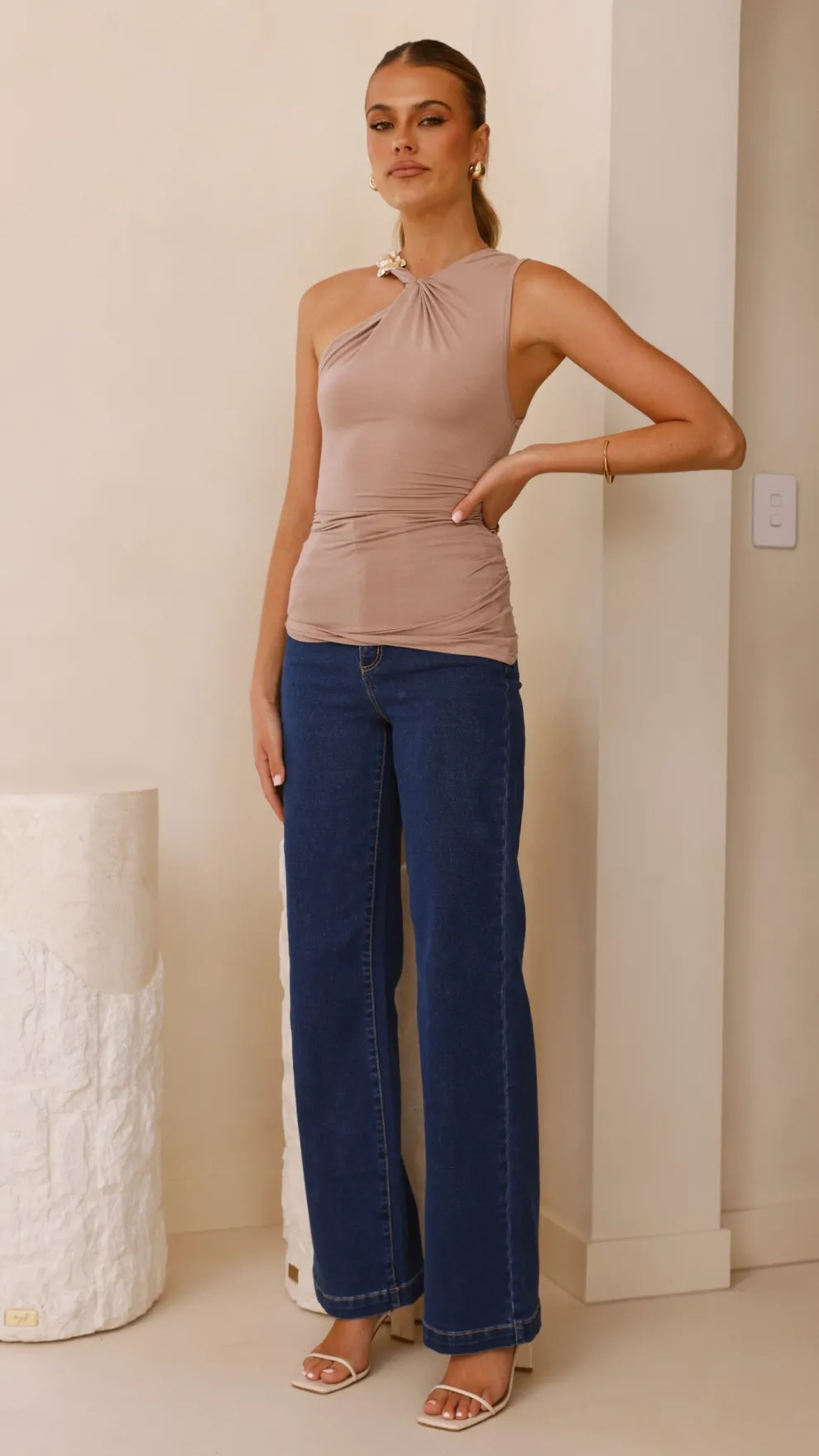 Get the look! Rollas Sailor Jean Long – Ashley Blue & Jamaya Heel – Nude