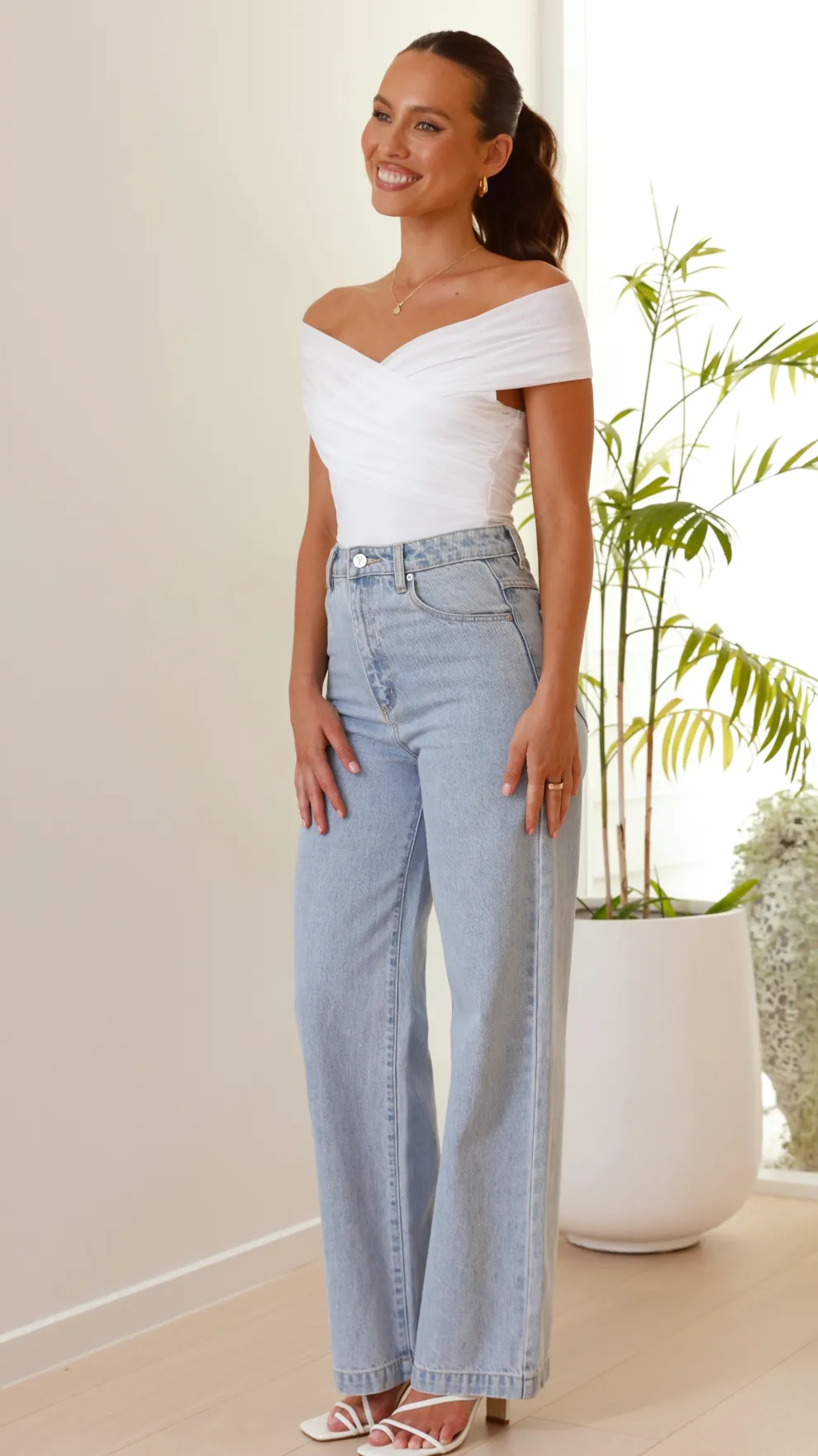 Get the look! Yazmin Heel – White & Abrand 94 High Slim Jeans – Walk Away