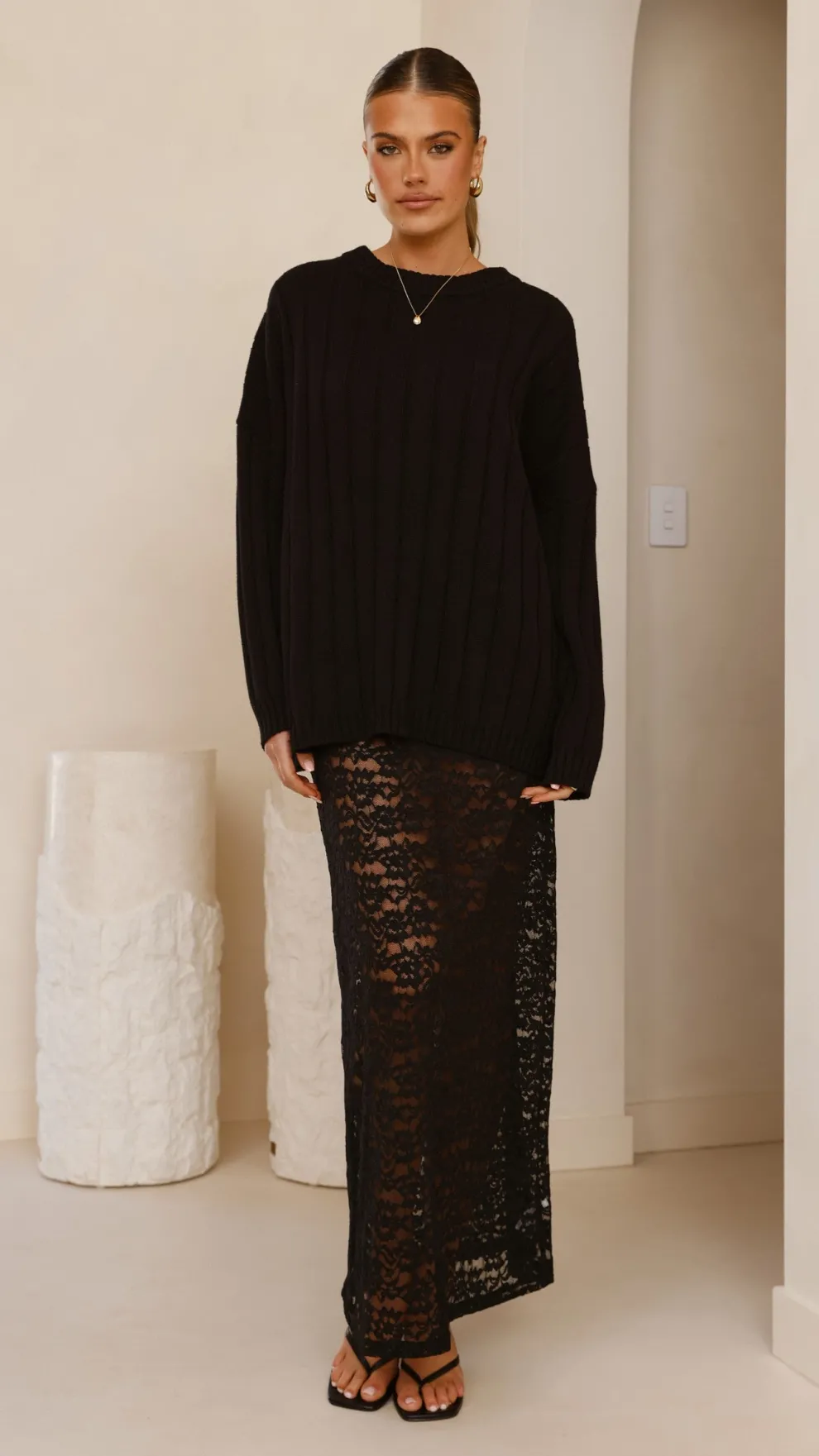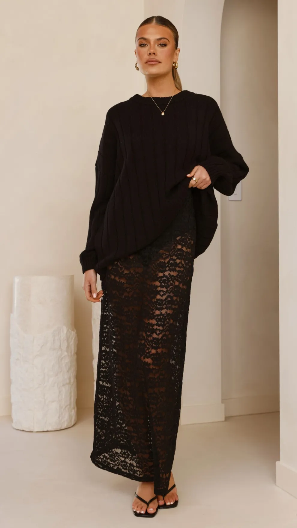 Get the look! Xami Heel – Black & Naiva Oversized Knit – Black