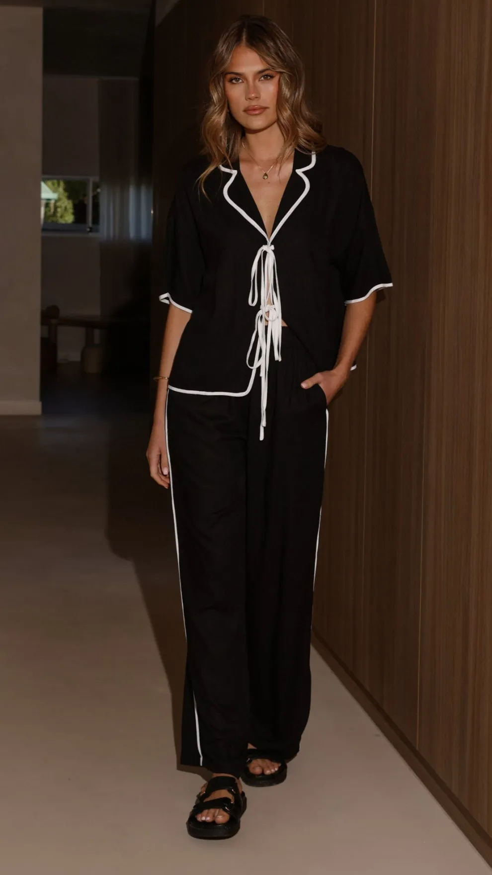 Get the look! Hartley Pants – Black / White & Xami Heel – Black