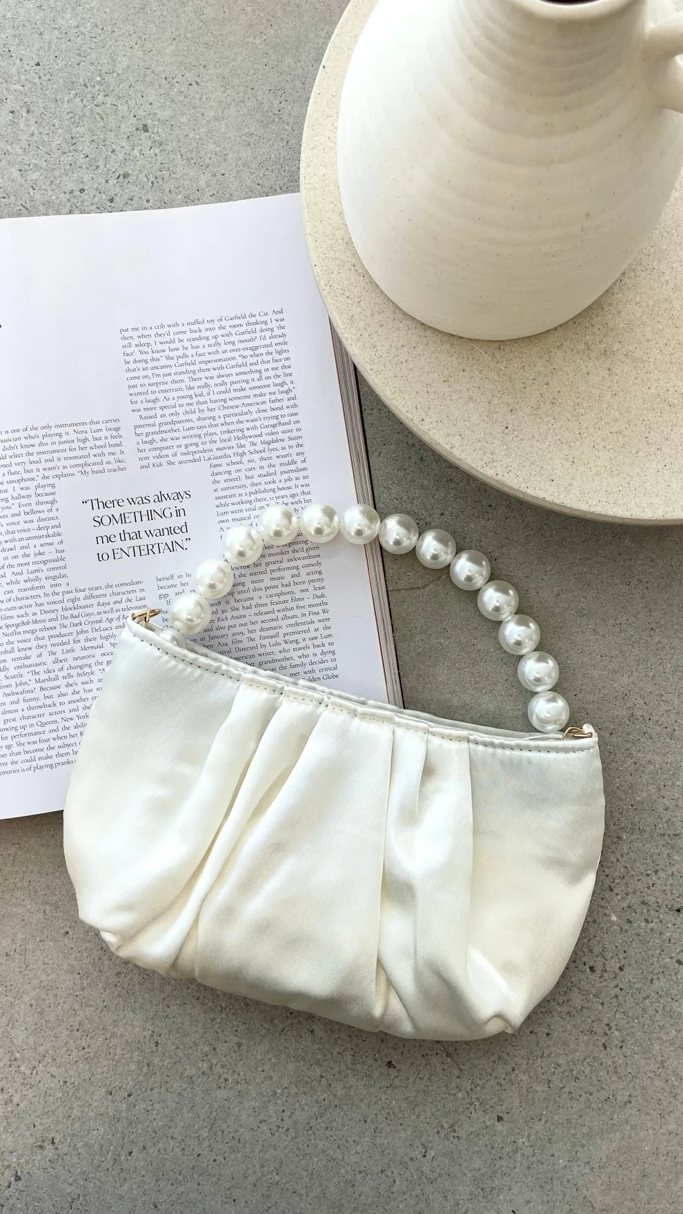 – Faux pearl top handle