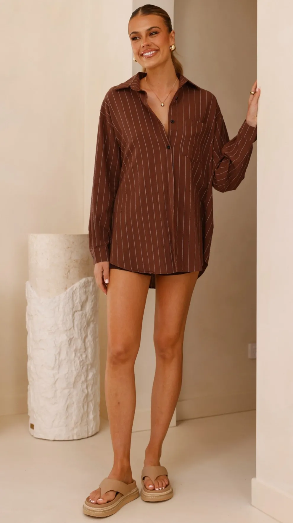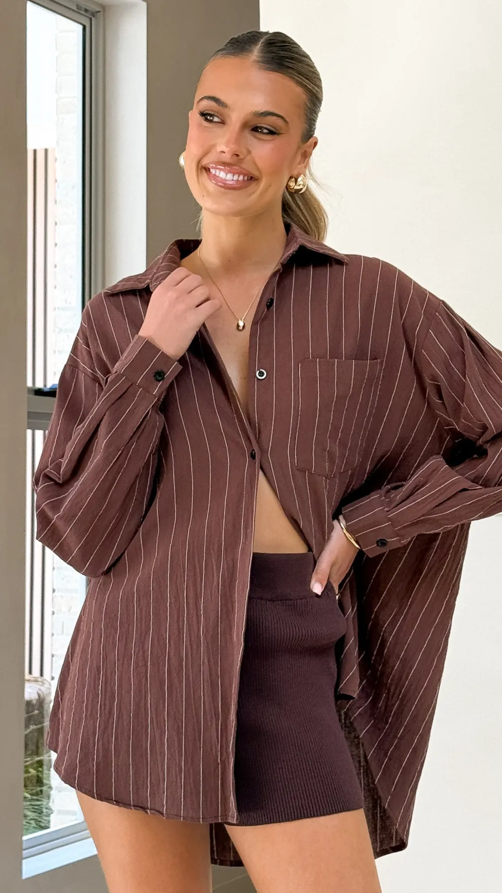 Get the look! Bianca Knit Ribbed Shorts – Brown & Amaya Slide – Clay