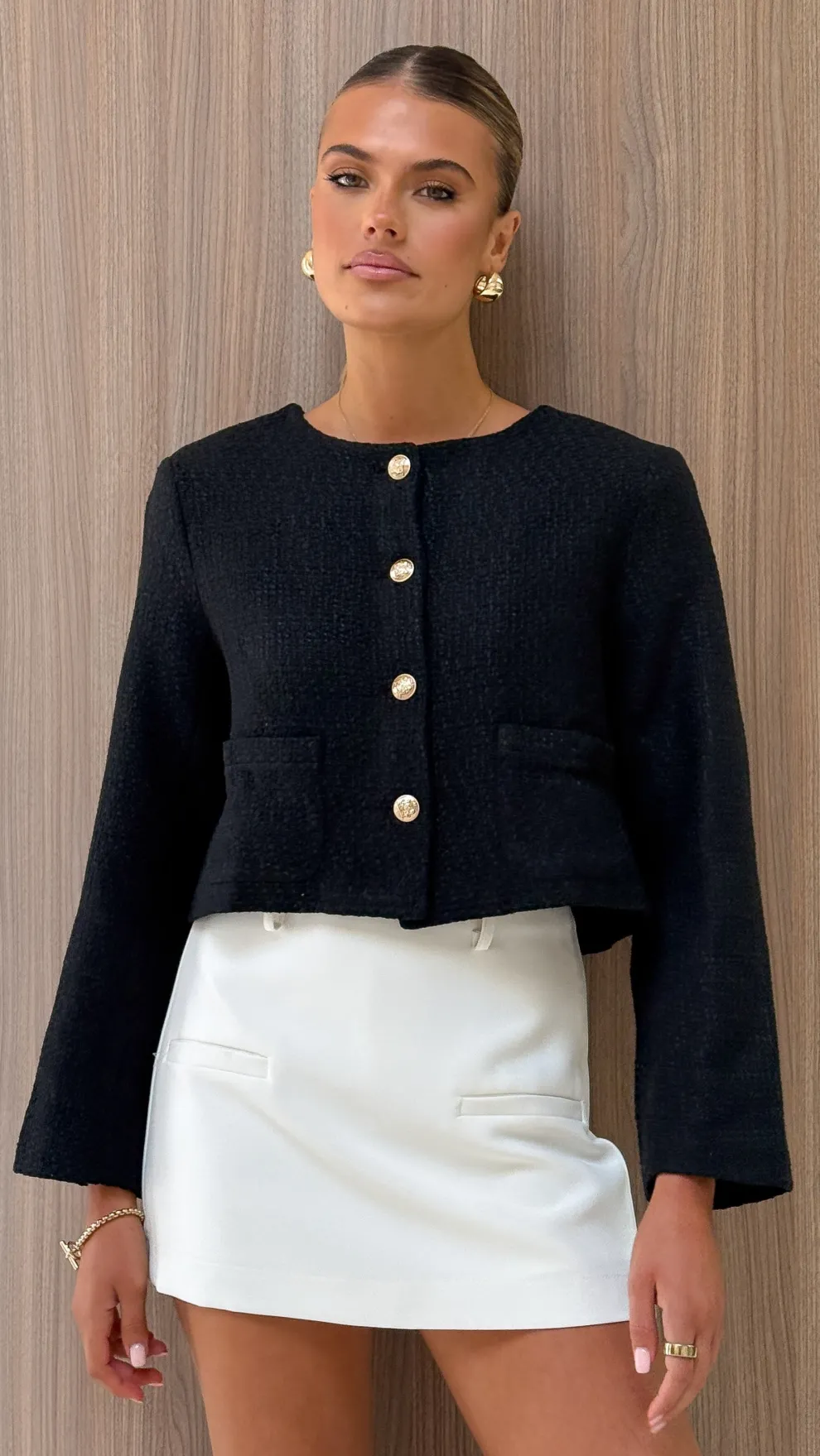 Get the look! Jessica Skort – White & Kendra Heel – Black Shine