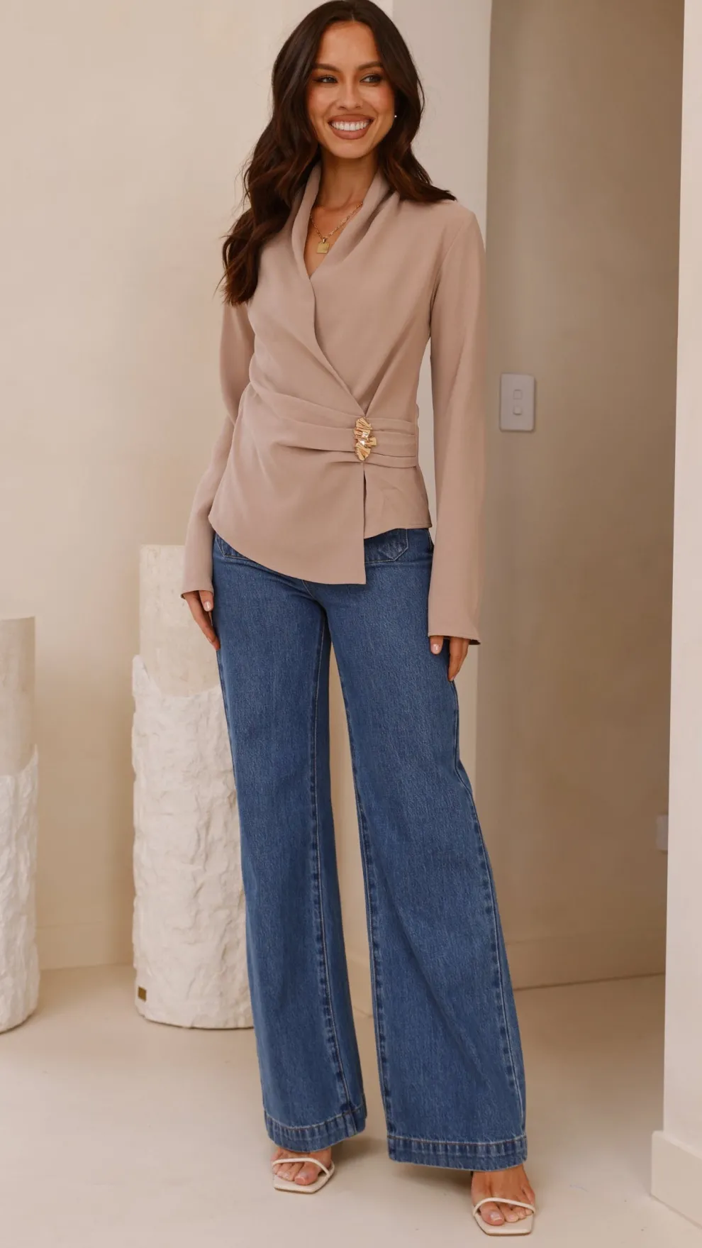 Get the look! Rollas Sailor Jean Long – Ashley Blue & Jamaya Heel – Nude