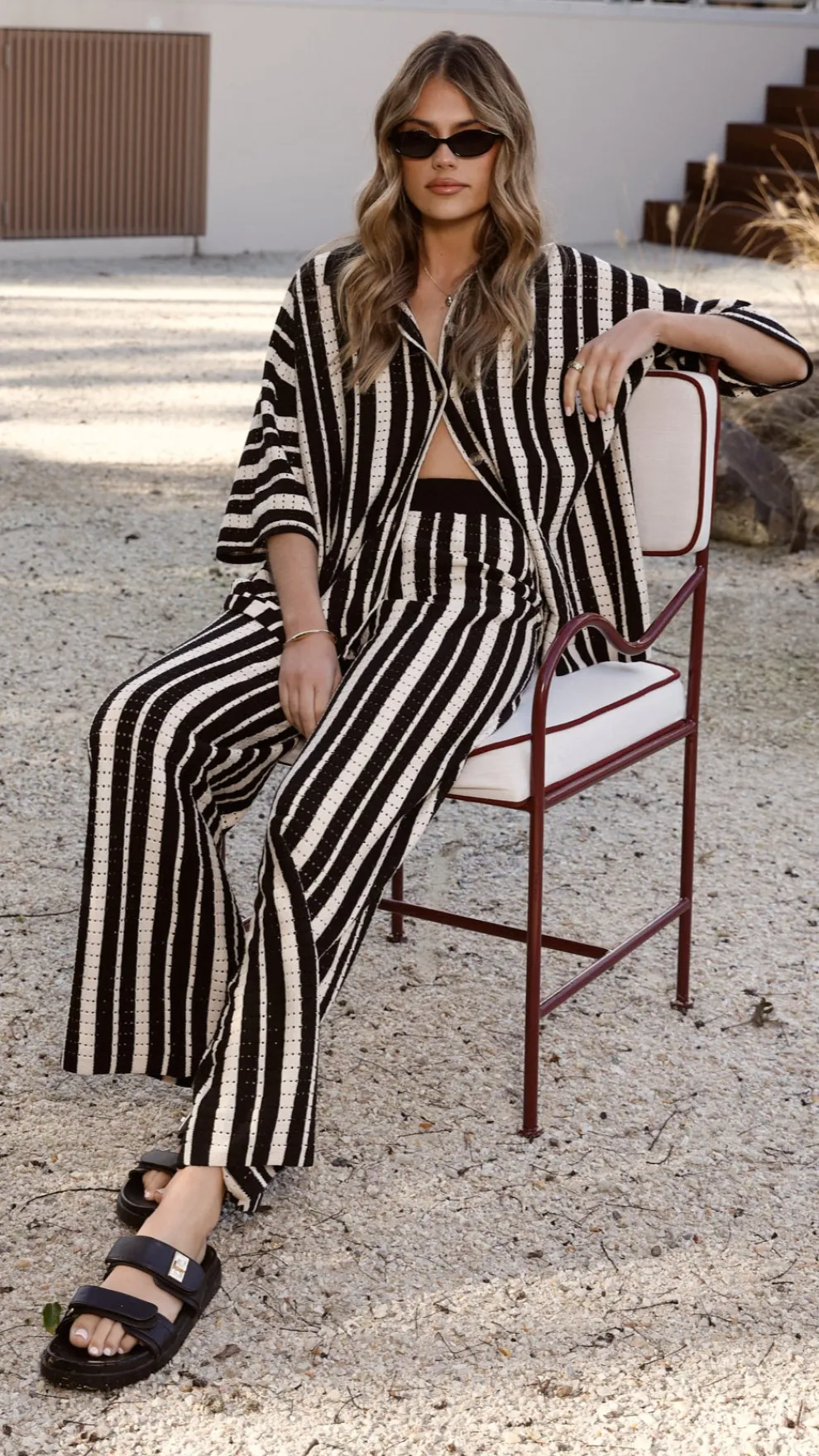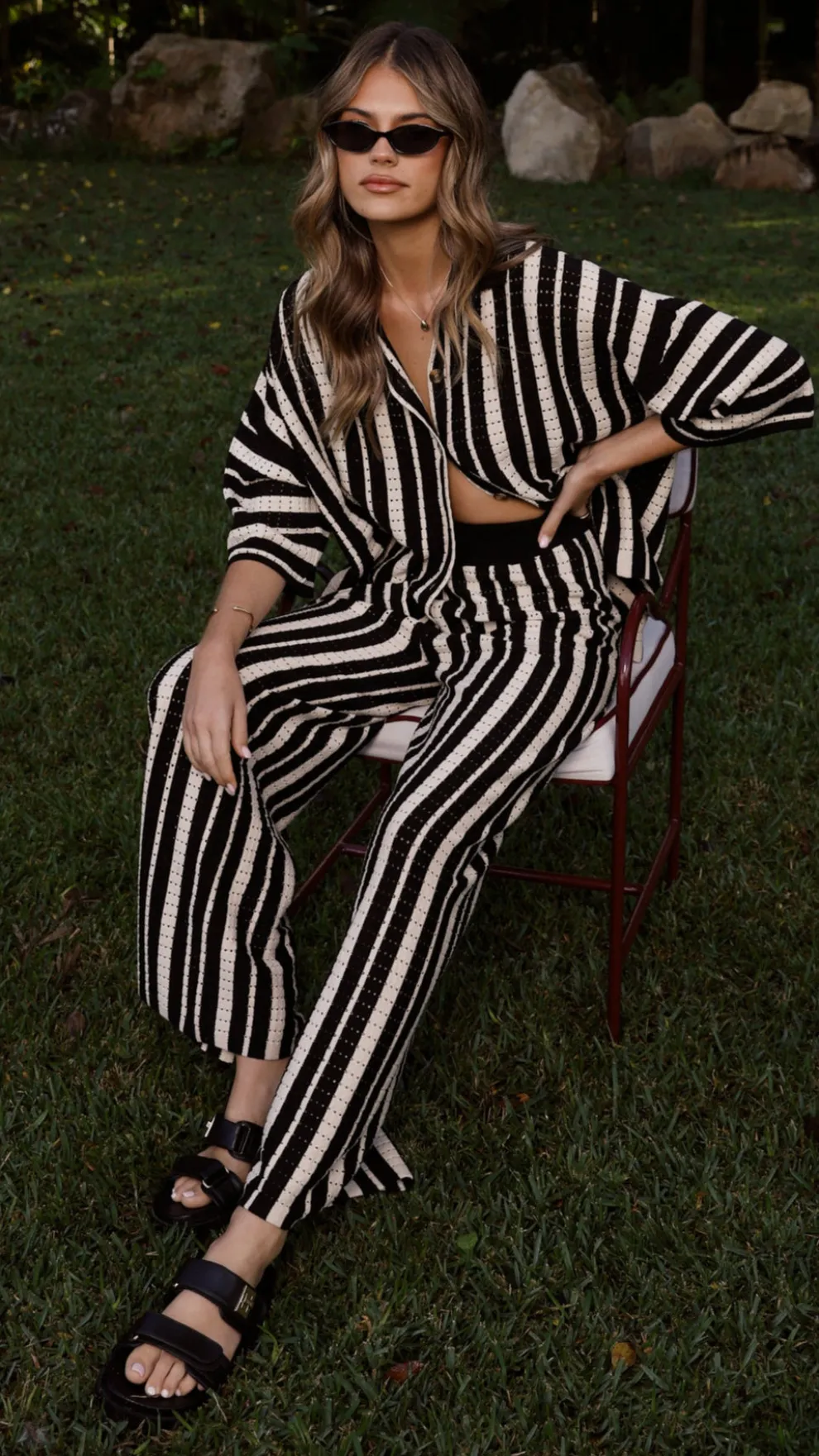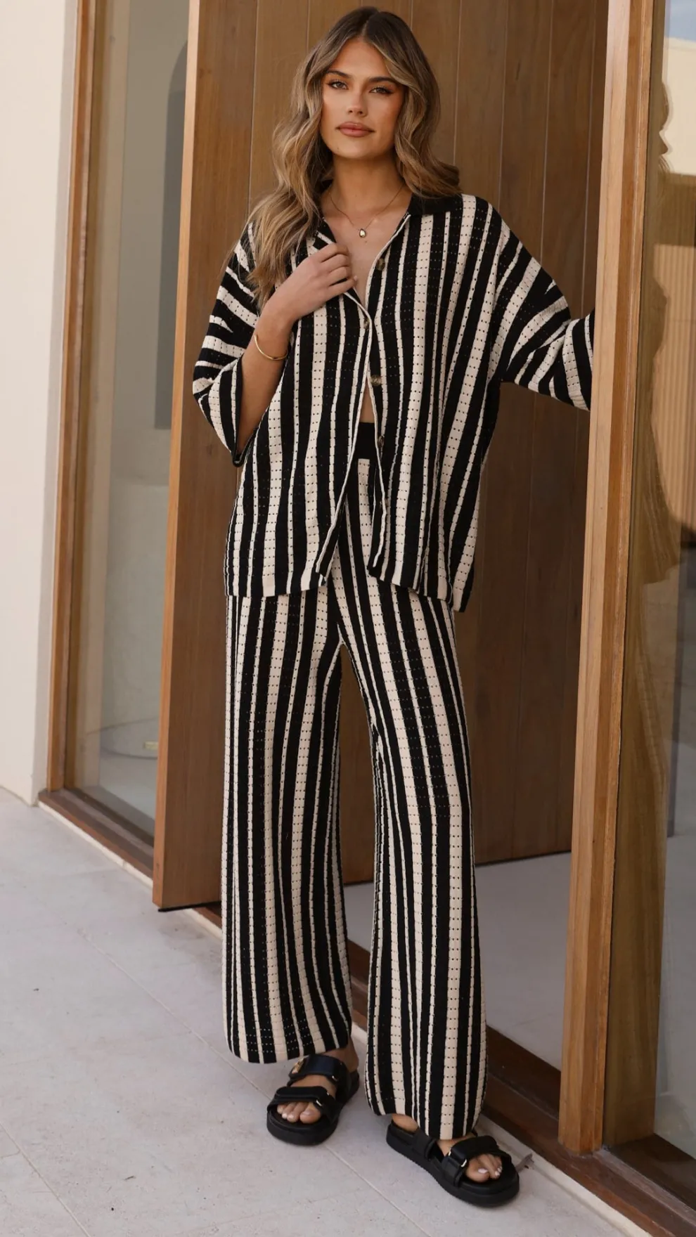 Get the look! Layla Knit Wide Leg Pants – Black & Amylee Slide – Black