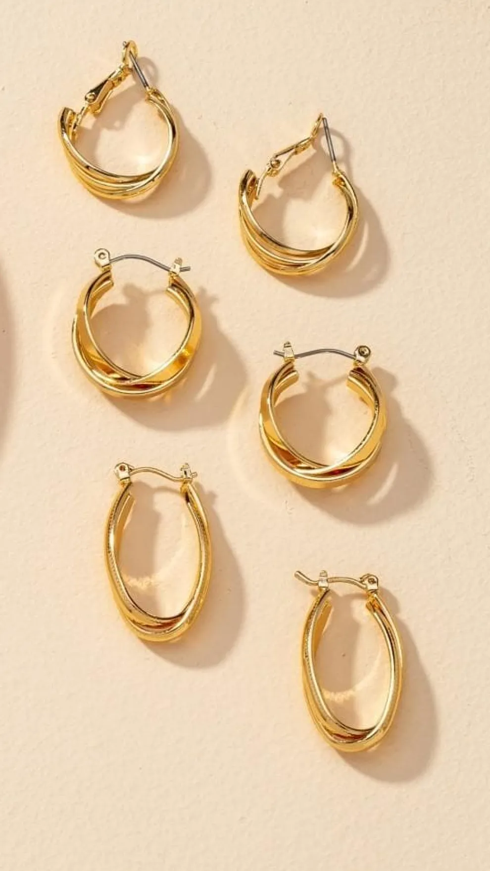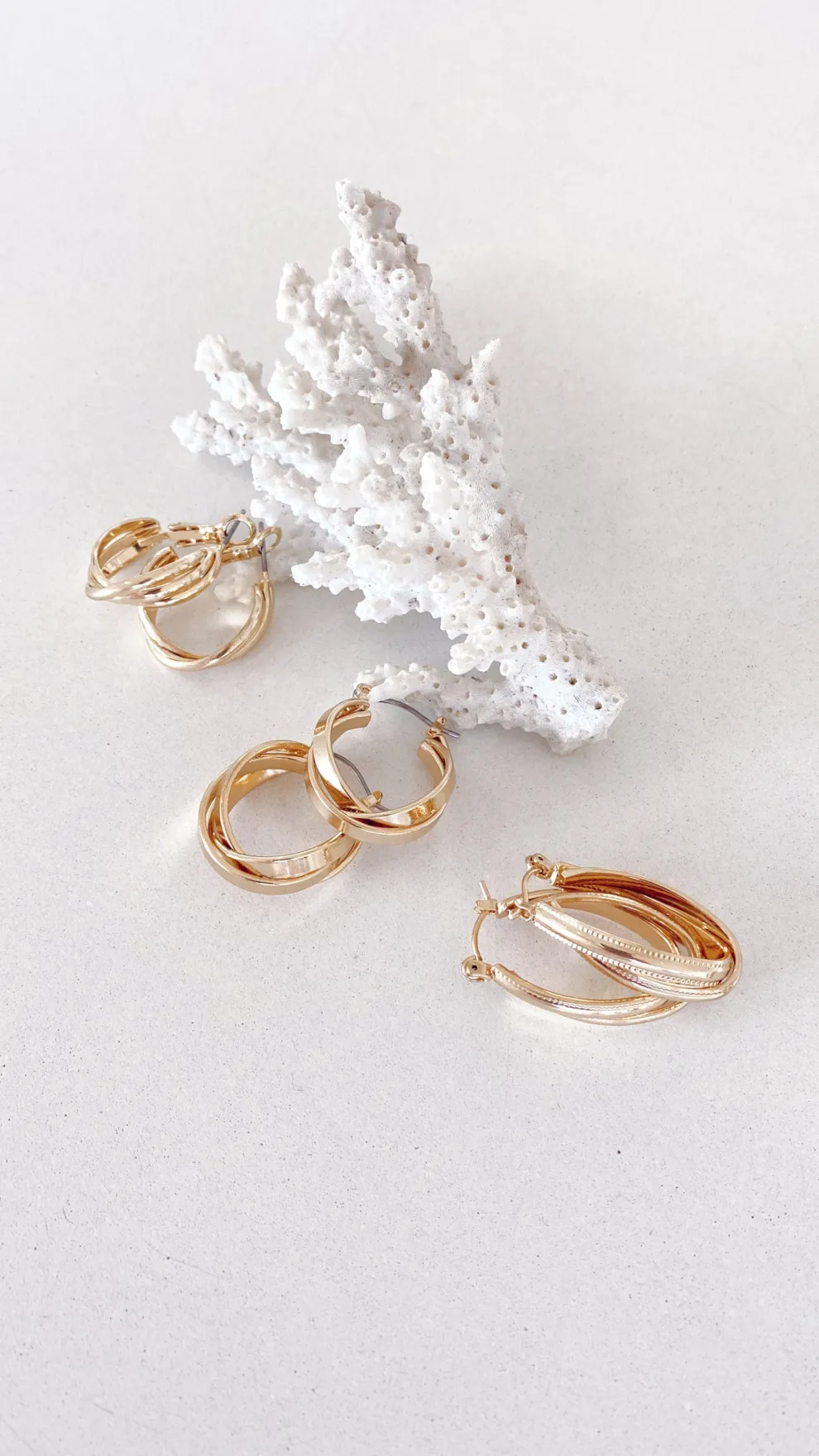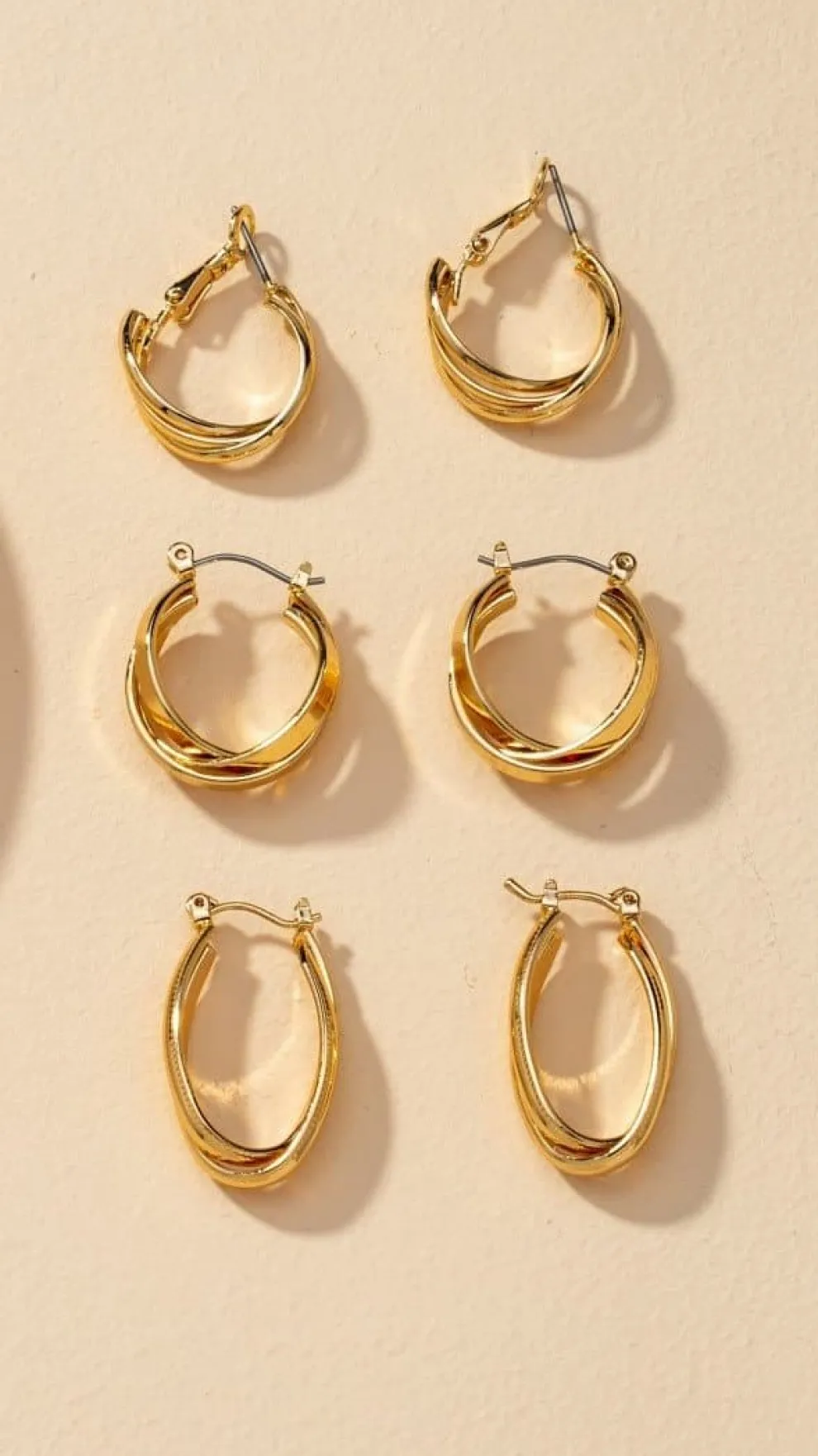 Maya Hoop Set consists of 3 pairs of hoops in varying sizes with a chic twist detail.
