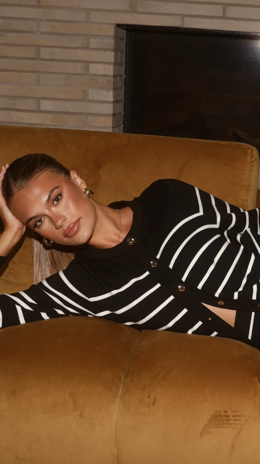 Get the look! Circa Mini Skirt – Black/White & Huxly Heel – White Shine