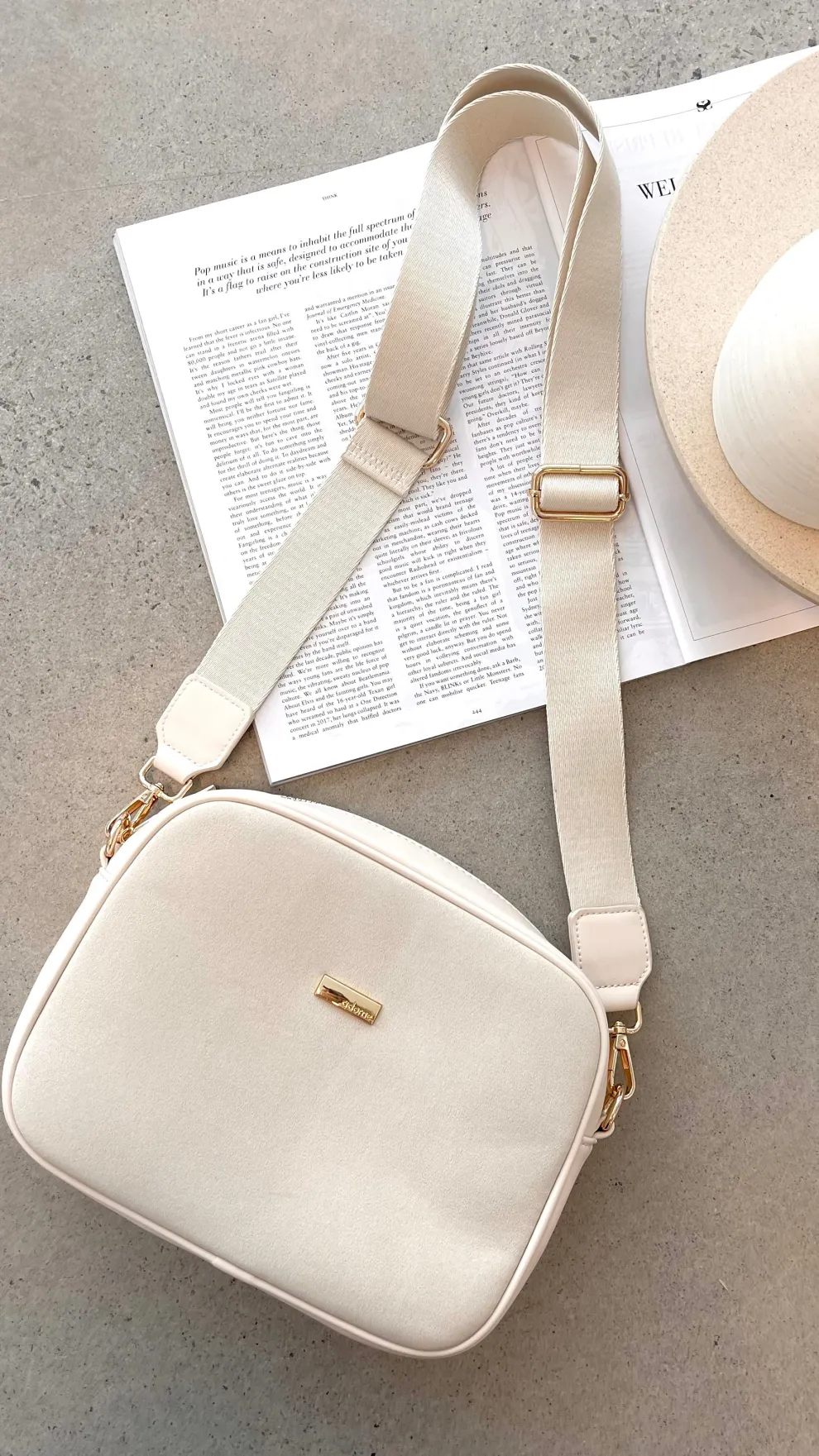 - Materials: Faux Suede, Vegan Leather & Plated Metal