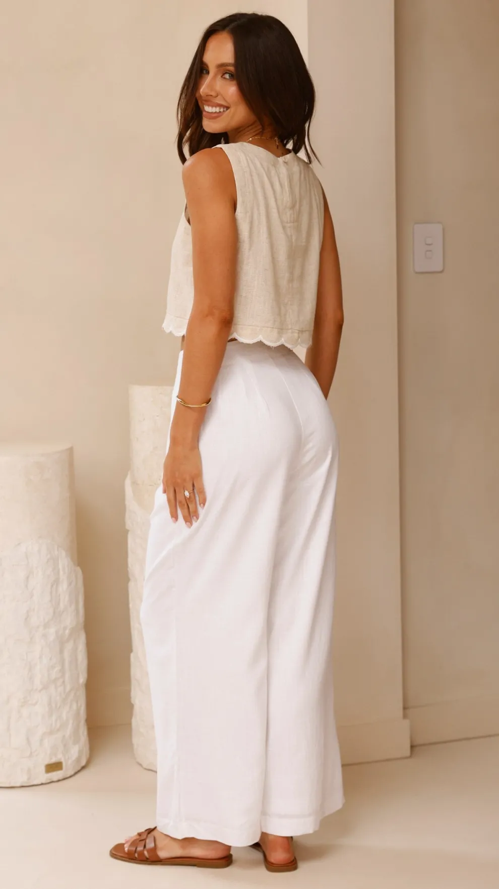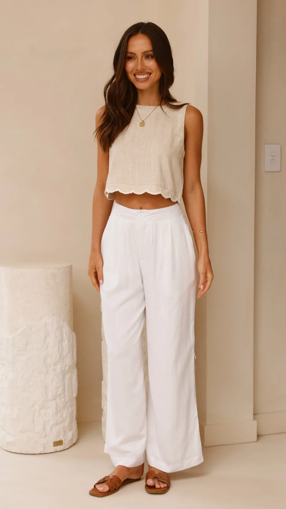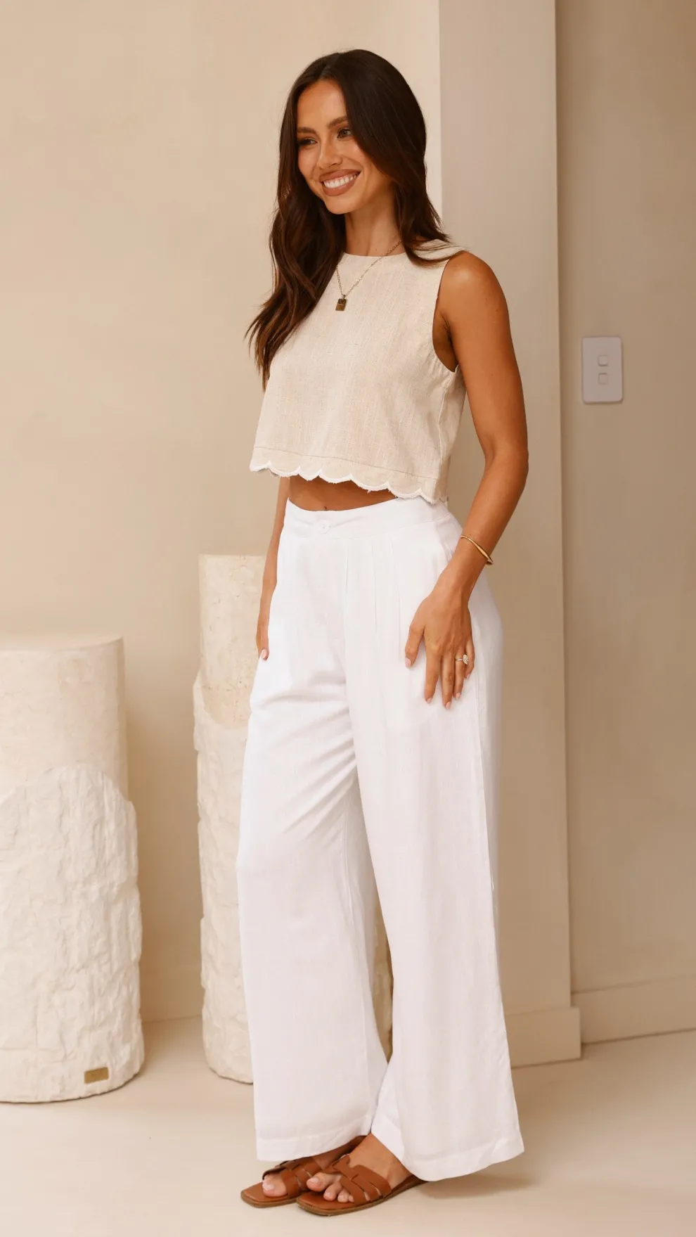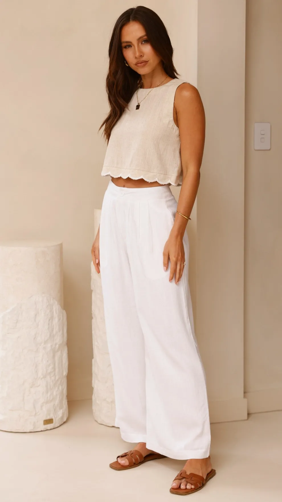 Get the look! Amylee Slide – Bone & Lexi Linen Pants – White
