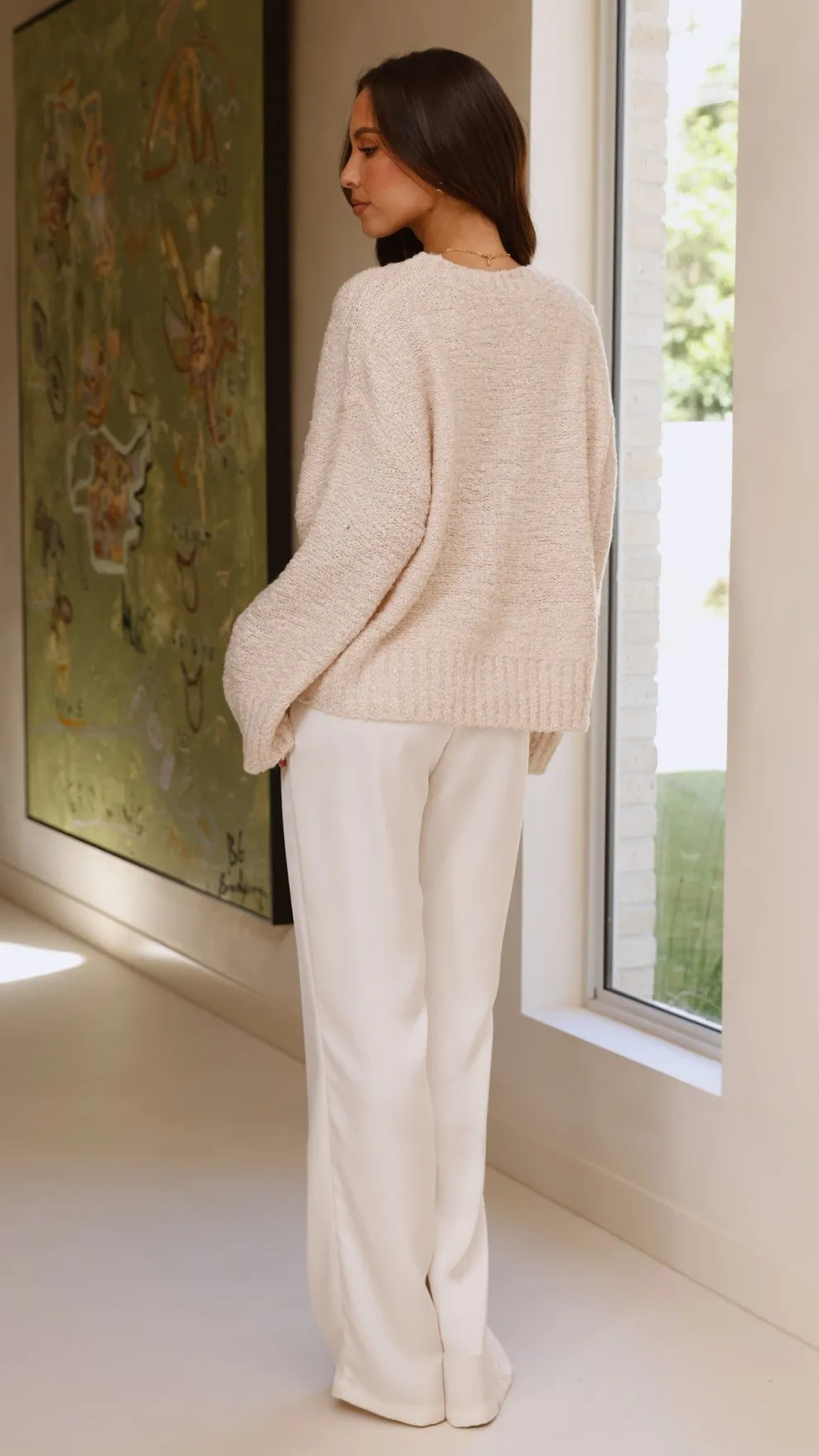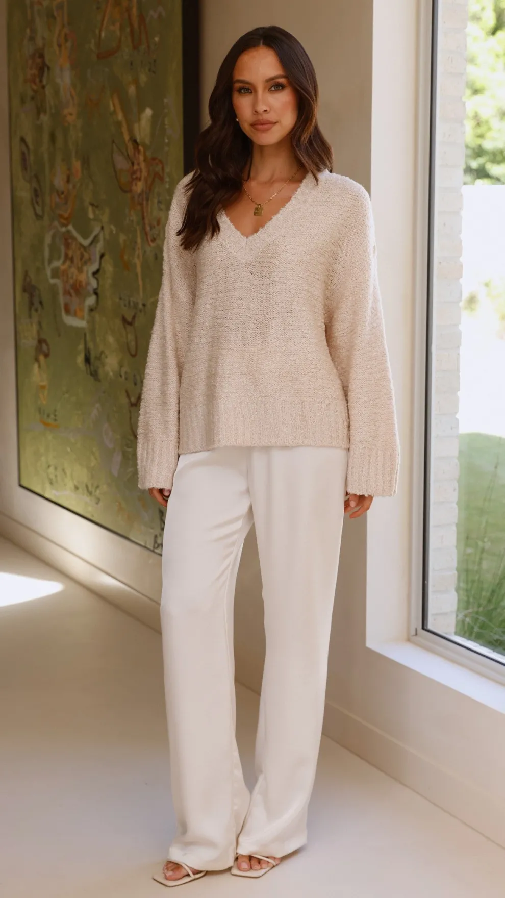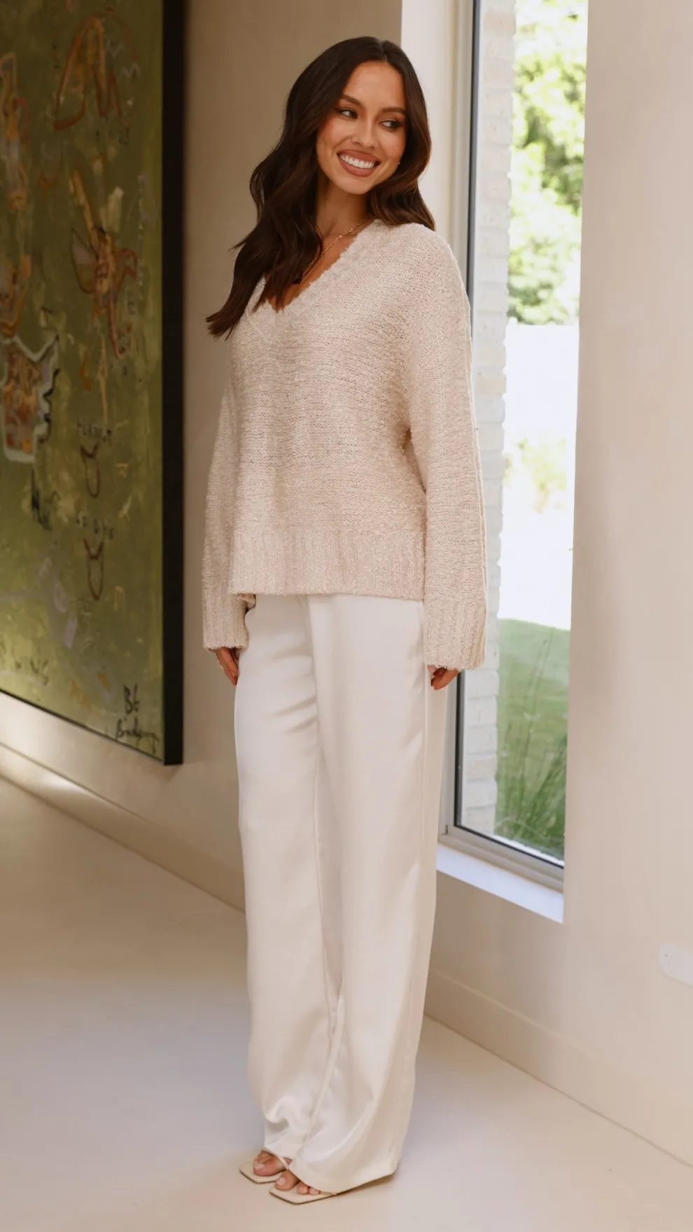Get the look! Imogen Button Pants – Cream & Jamaya Heel – Nude