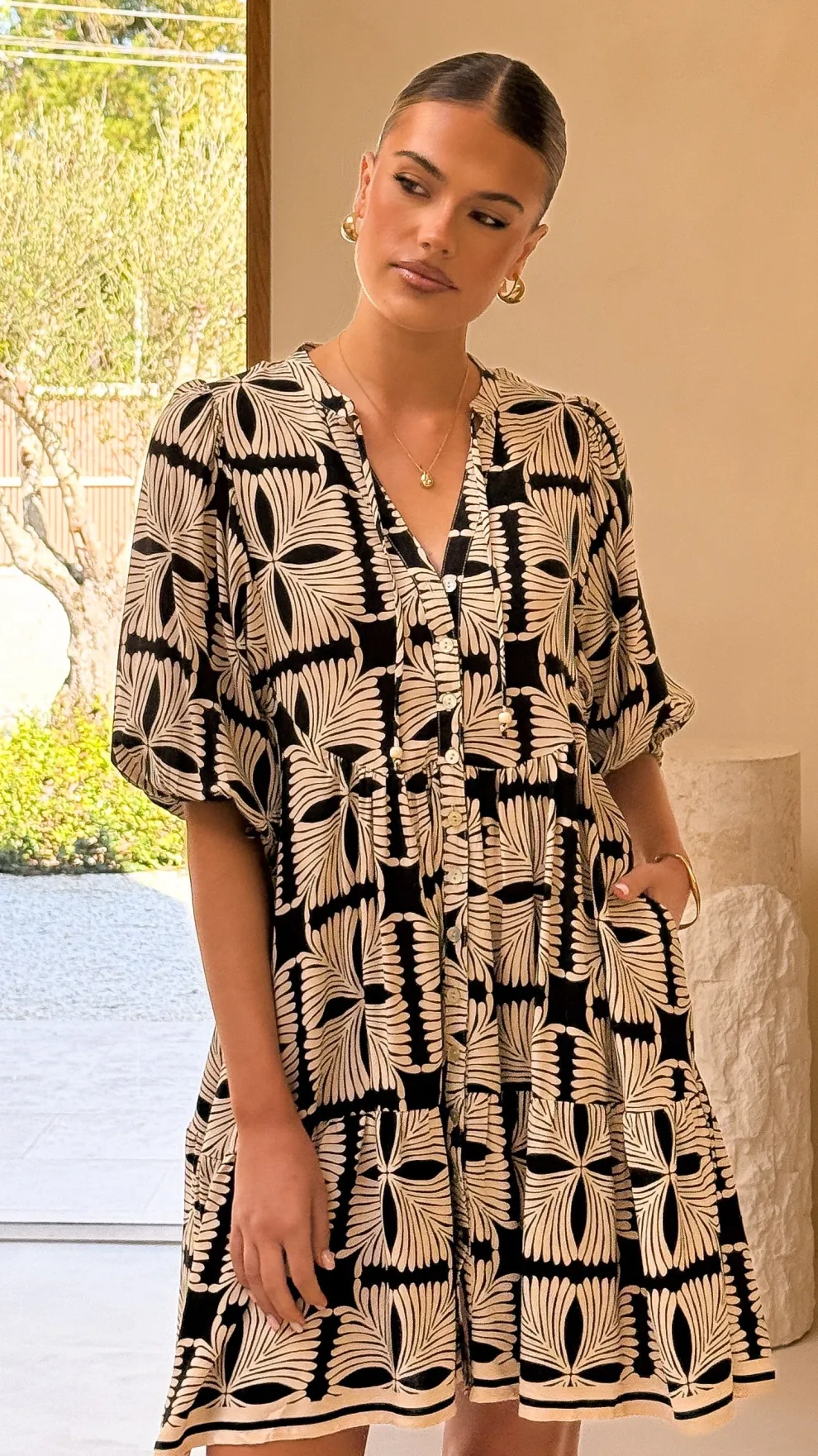 – Balloon sleeve with adjustable cuff ties