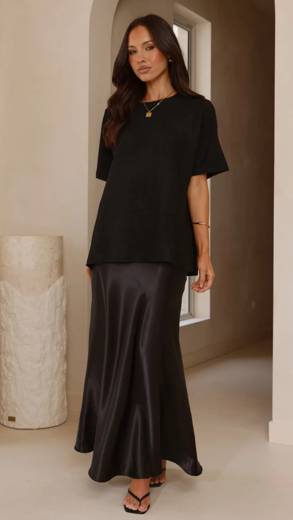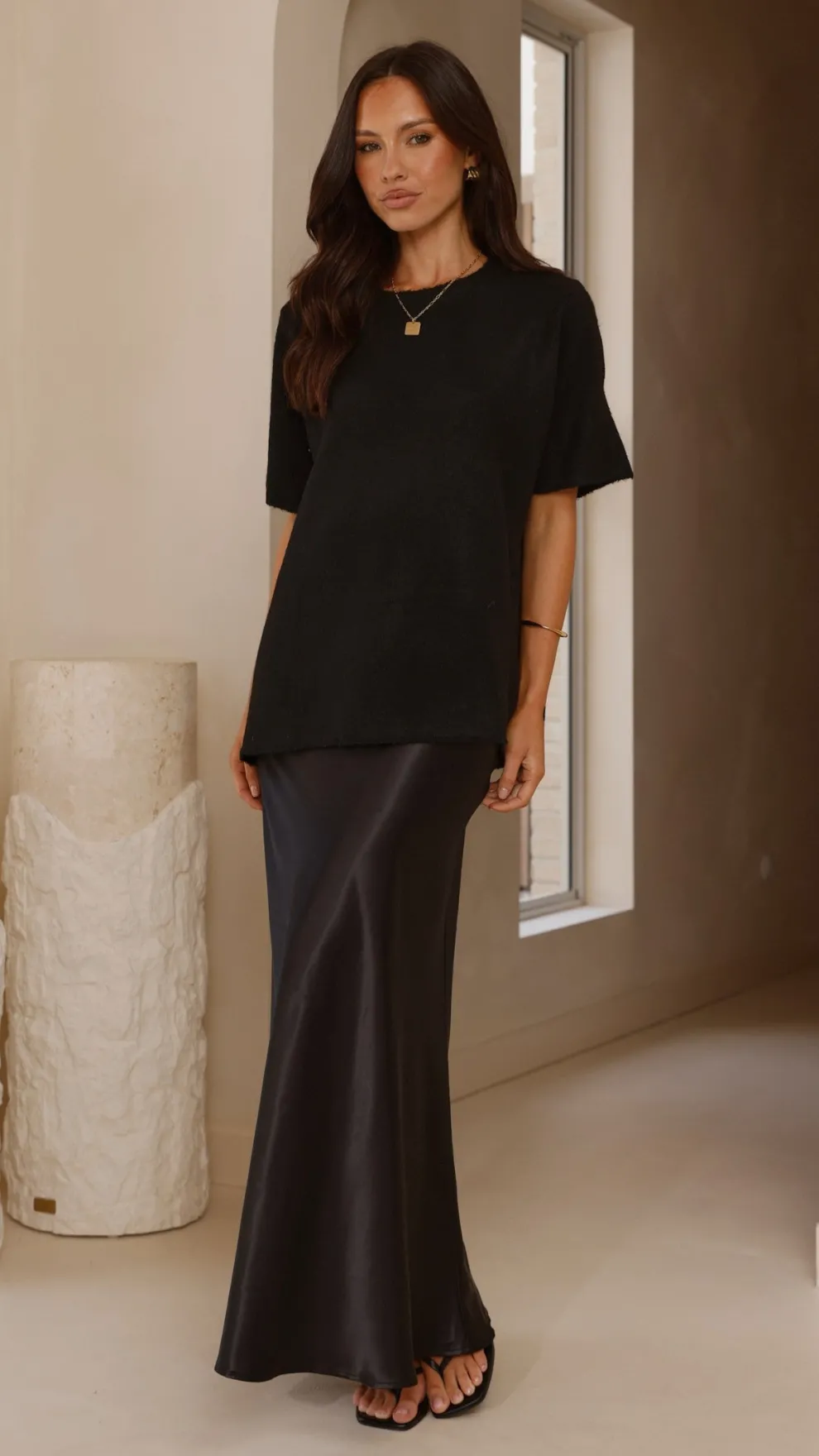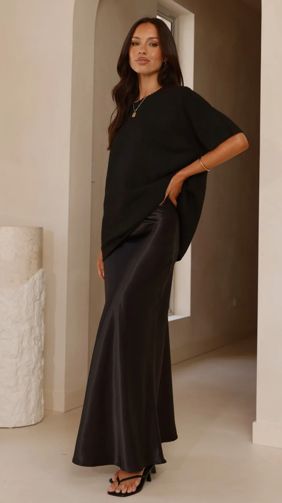 Get the look! Darina Bias Cut Maxi Skirt – Black & Xami Heel – Black