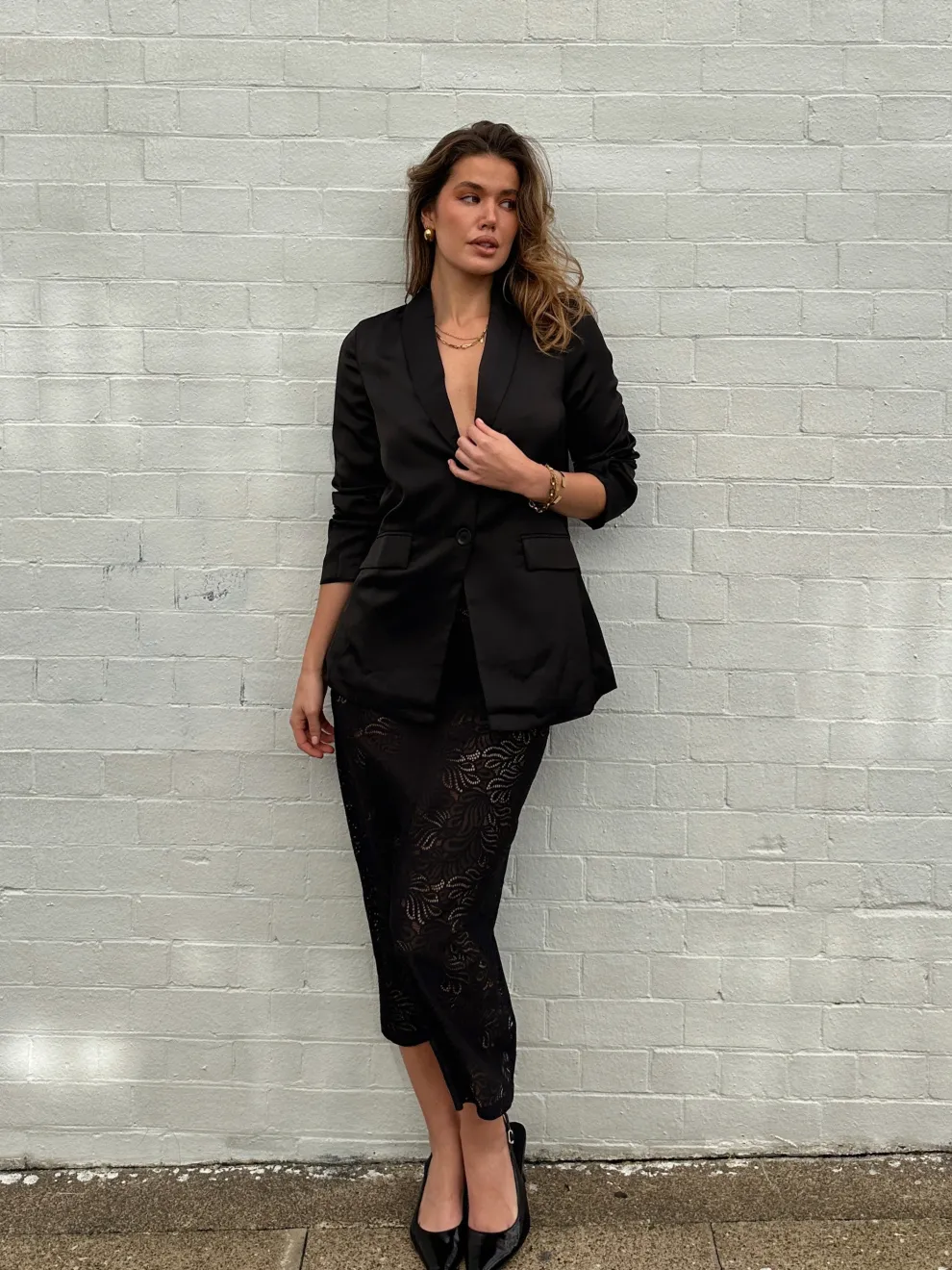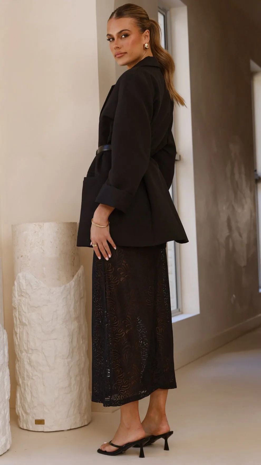 Get the look! Louisa Lace Maxi Skirt – Black ,Monica Belt – Black & Xami Heel – Black