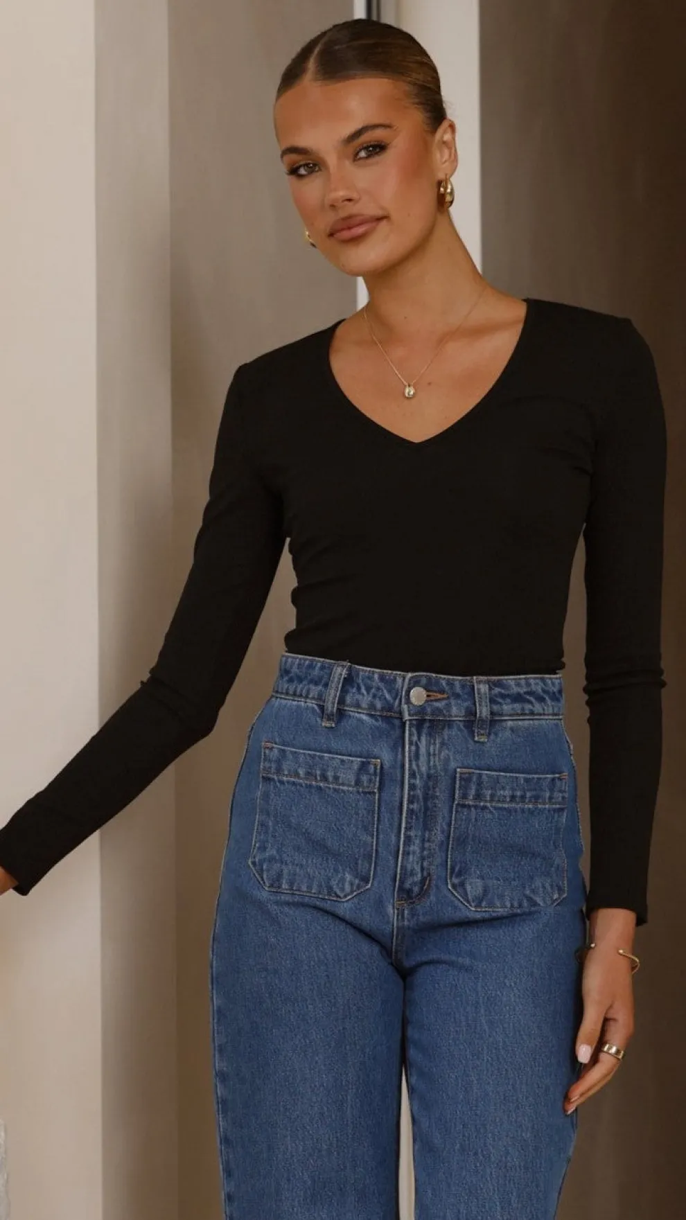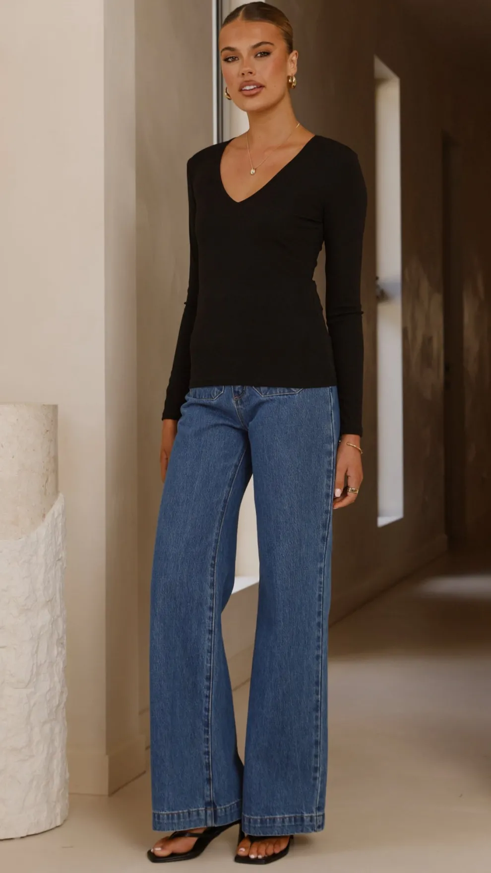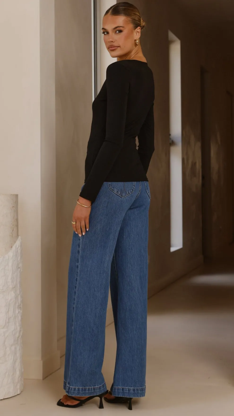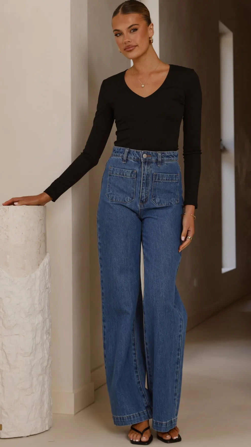 Get the look! Rollas Sailor Jean Long – Ashley Blue & Xami Heel – Black