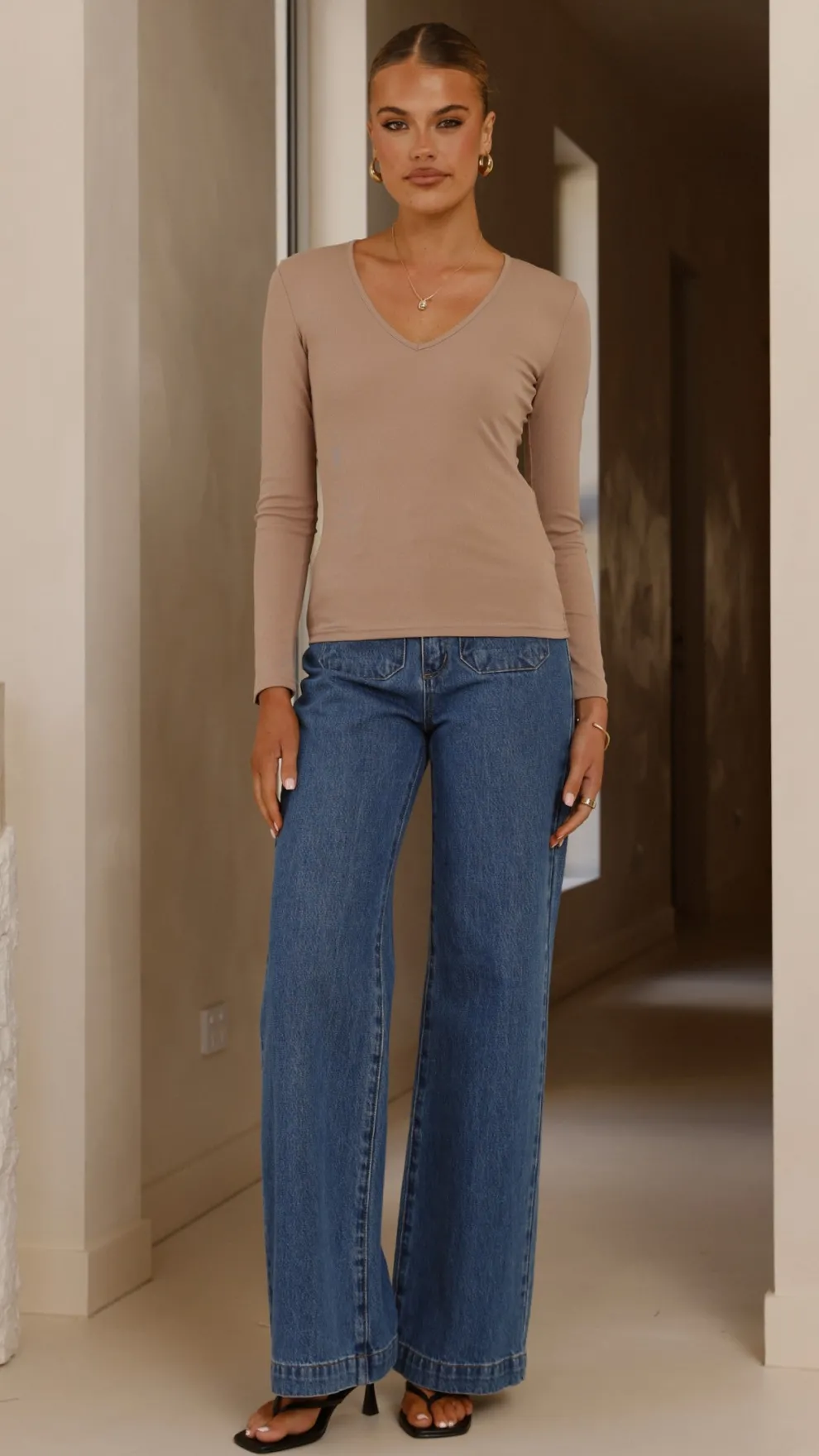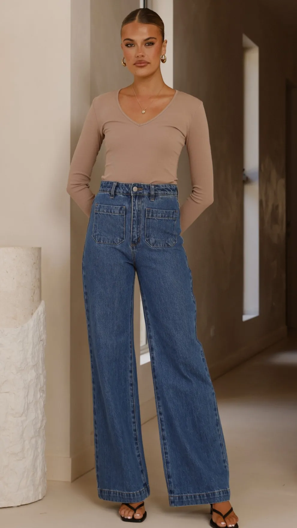 Get the look! Rollas Sailor Jean Long – Ashley Blue & Xami Heel – White